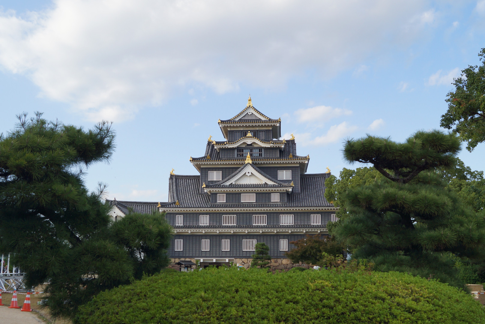 改めて近くで見ると、黒と漆喰の白のコントラストが素晴らしい。烏城は岡山の誇り。