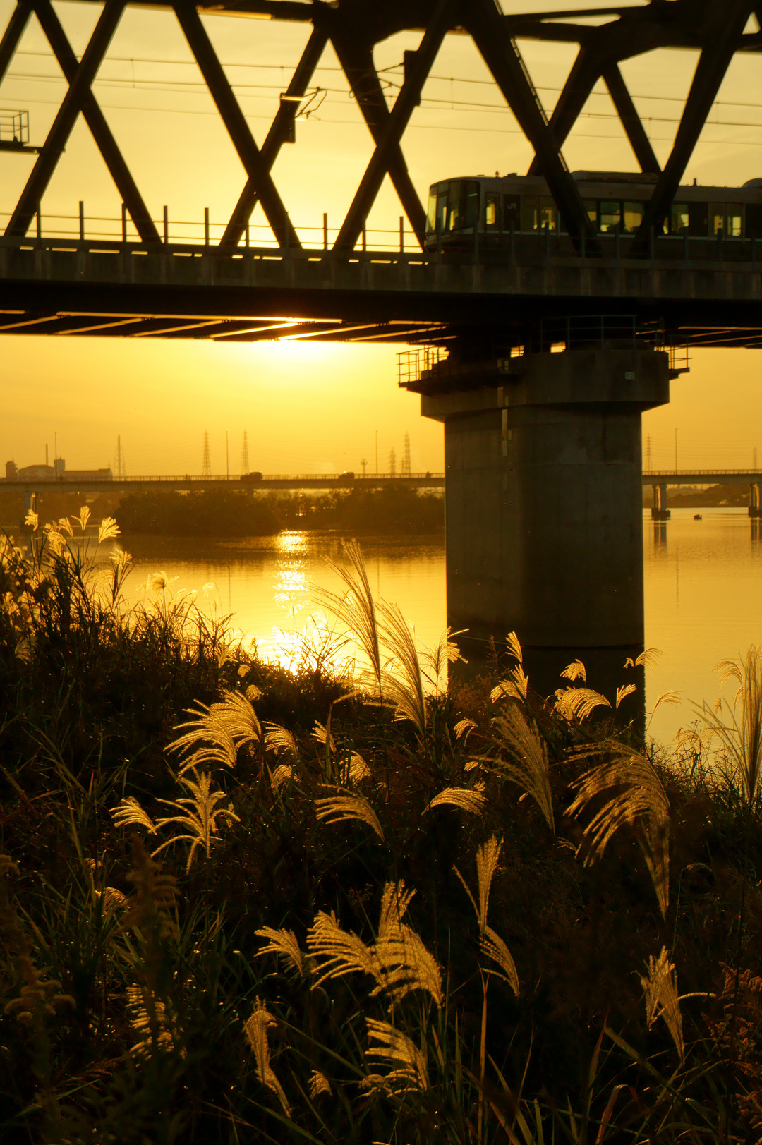 ススキが、夕日に映えます 秋ですねぇ~
