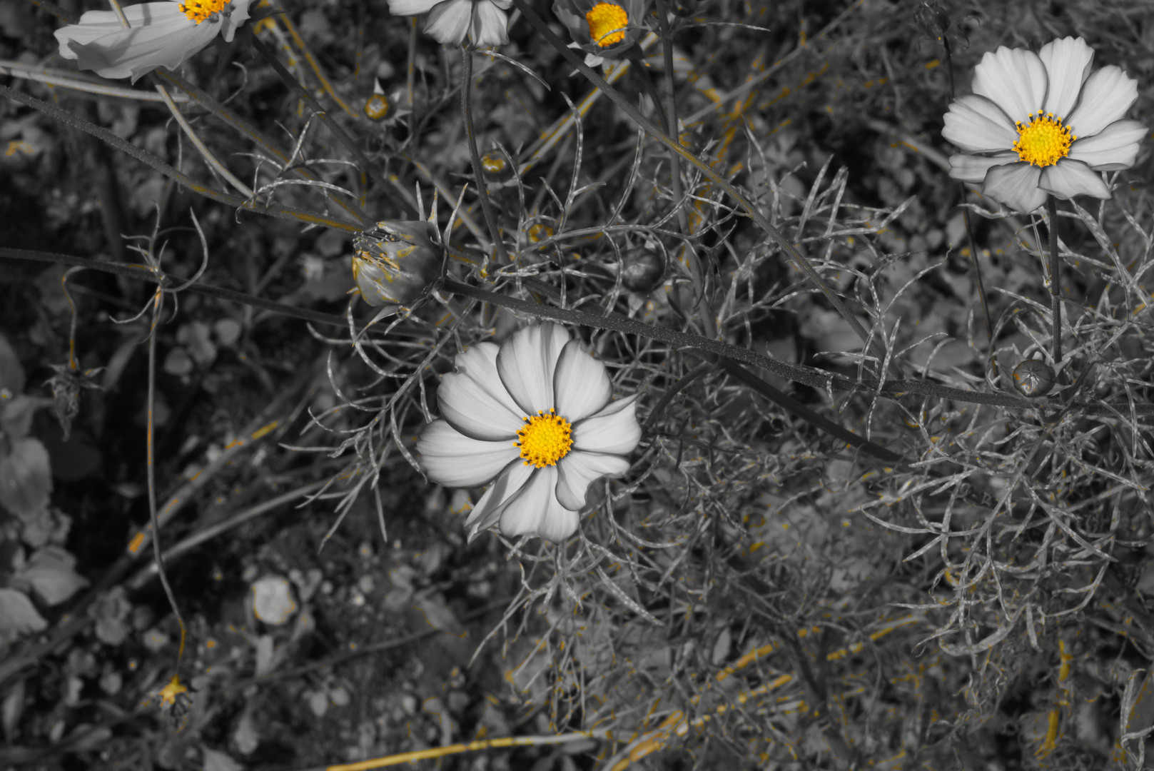 パートカラーで黄色を選択。不思議な雰囲気のコスモスになりました。