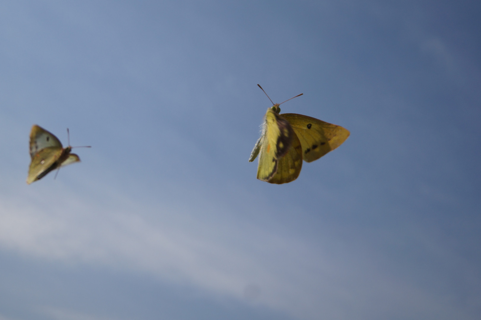 これはモンキチョウでしょうか。 鬼ごっこに夢中です。