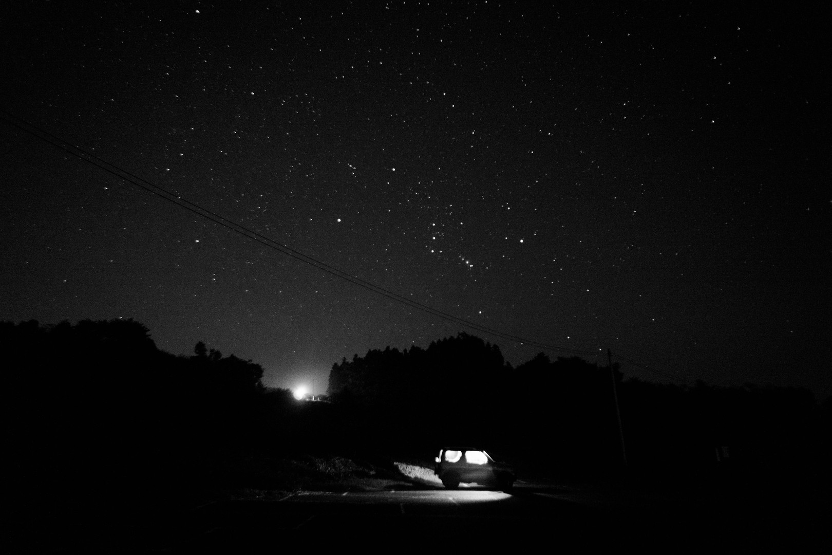 たまたま夜遅く車を走らせていたところ、空が澄み切っていて、肉眼でも天の川が見えるほででした。考えることは同じようで先客がいたようで、その方の車のルームライトも一緒に撮影してみました。