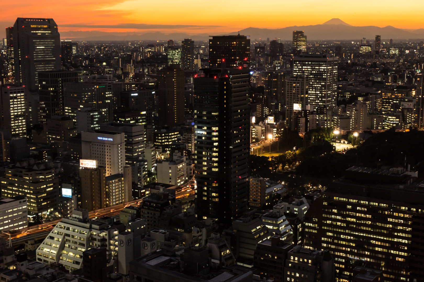 高いところから富士山を眺めていました。