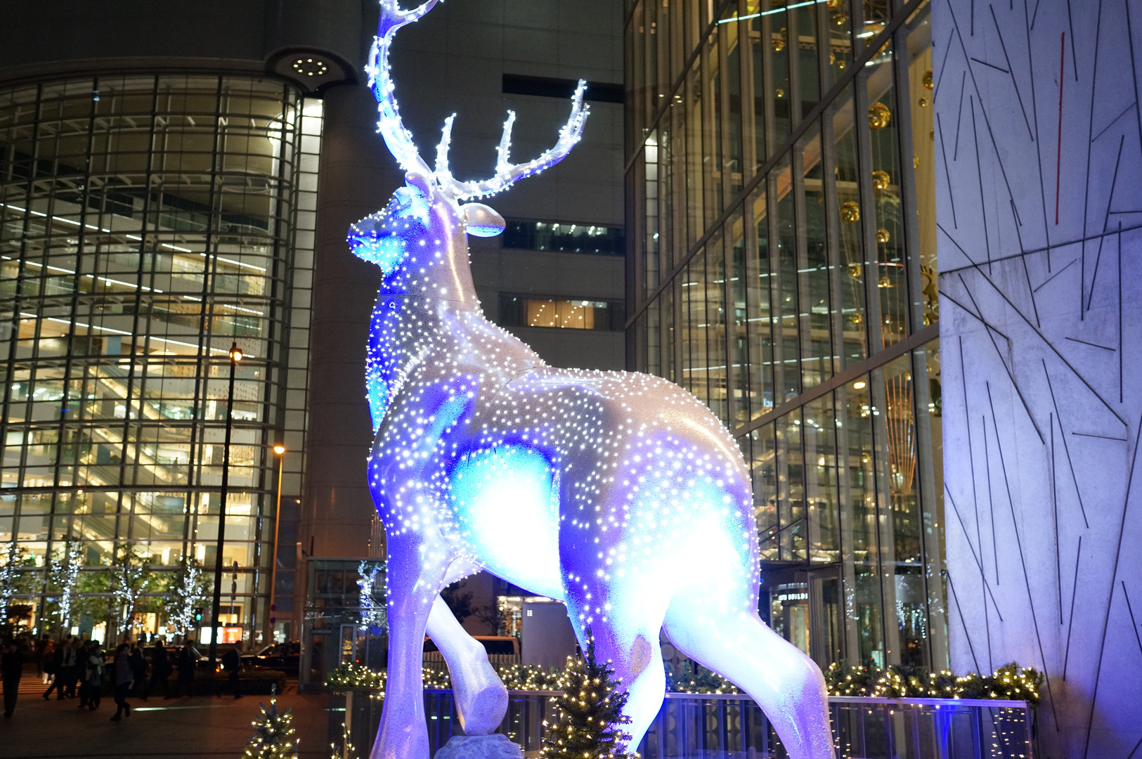 ソニーストア大阪でおなじみ(?)ハービスエント。 昨年に引き続き、本日から6m超のシカのオブジェがお目見え。 その勇姿を後ろ姿から。