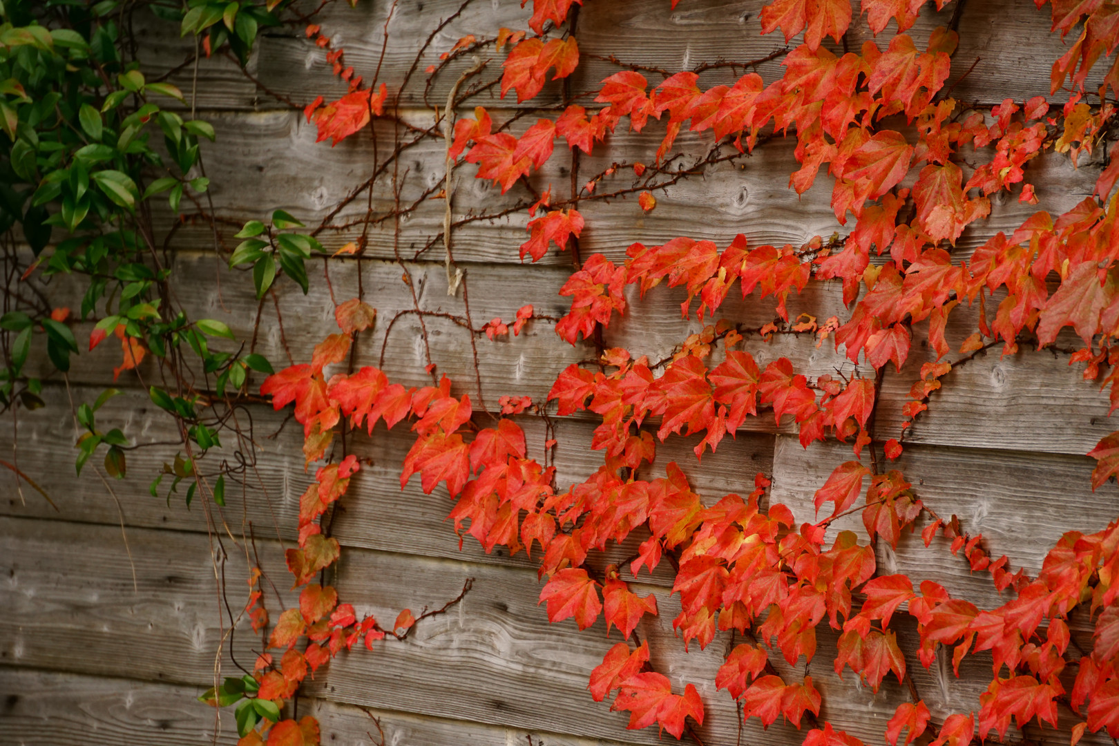 ツタの紅葉です、 廃校になった校舎の壁にはってます。 一昔前はこの華やかさは見向きもされない位子供達の騒ぎがあったのでしょうね。