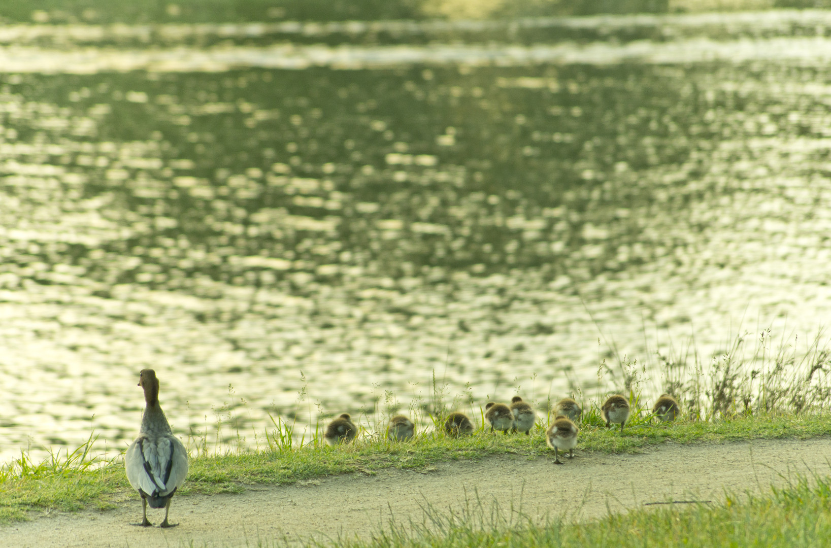 夕暮れに子供たちを連れて歩くカモ。 思わず、癒されました。