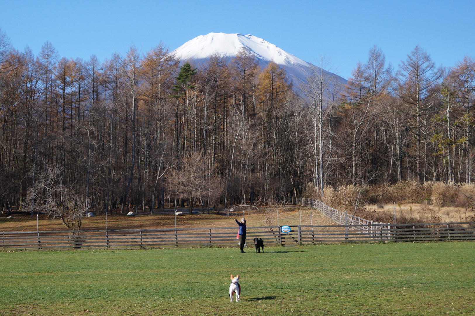 広々としたドッグランで雄大な富士を背景にたっぷり遊びました。