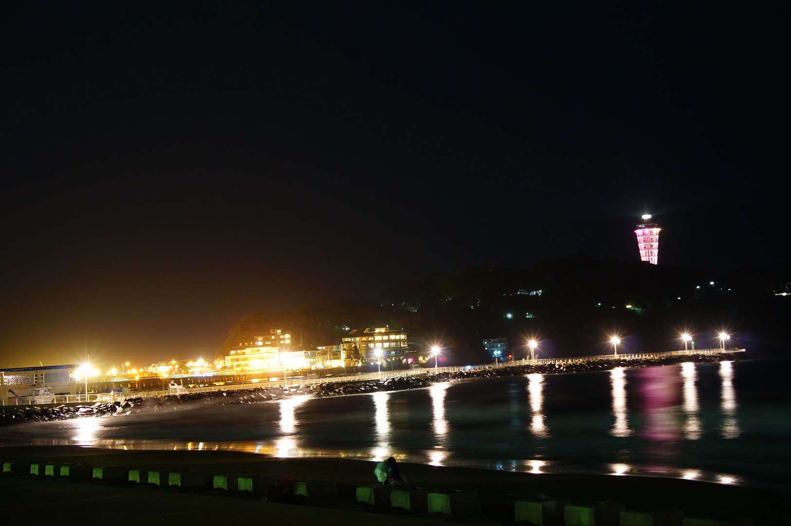 かまくら再来のきろく。水族館よりえのしまを望む。 はじめて、マニュアルで夜景を撮りました。