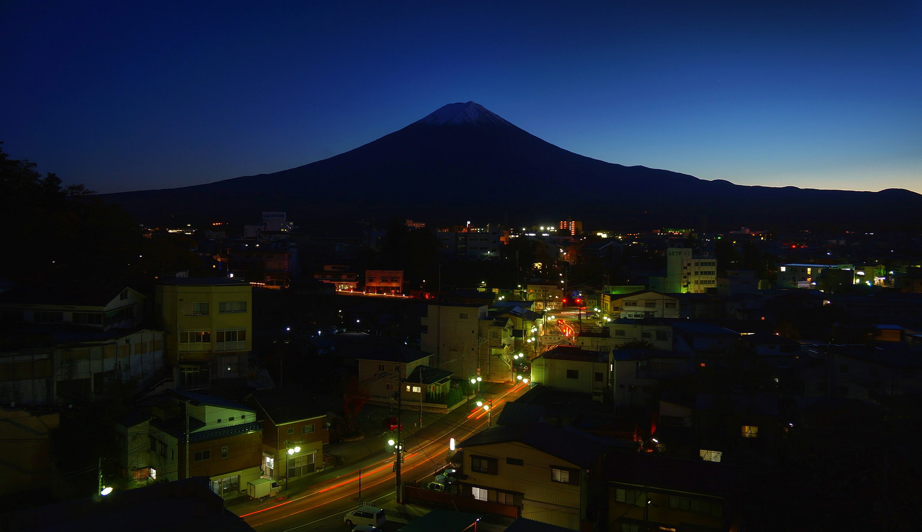 河口湖畔の宿の屋上から撮りました。