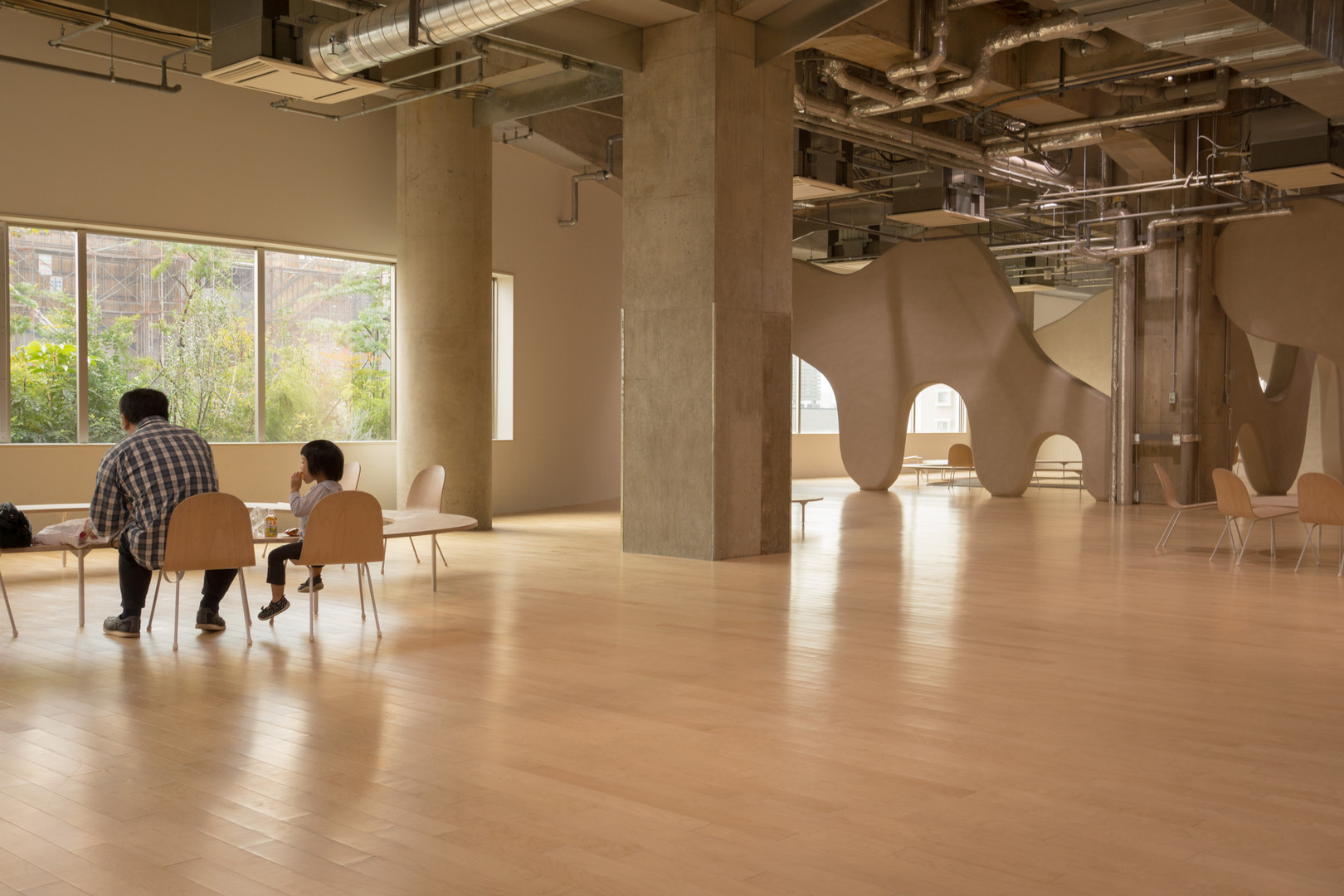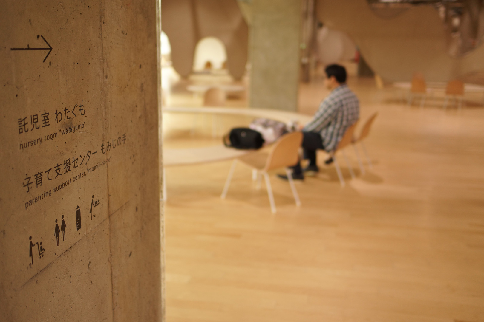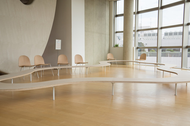 本厚木の複合施設のワンフロアの様子です。「こどもゾーン」という名前で、確かに子供向けの公共施設が入っているのですが、まるでフロア全体がモダンアートの作品かのような雰囲気です。子連れでなくてもフロアに入ることはできます。美味しいコーヒーでも持ち込んでくつろげそうです。