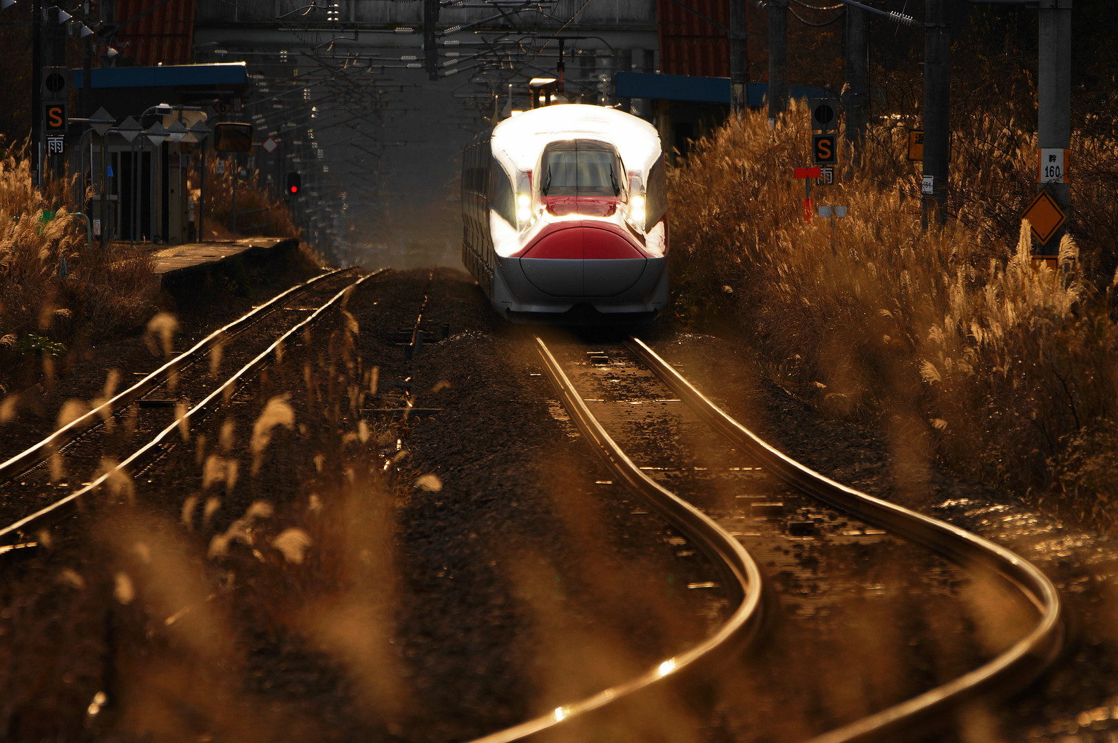 逆光で輝くススキとこまち 念願のショットが撮れました!(^^)!