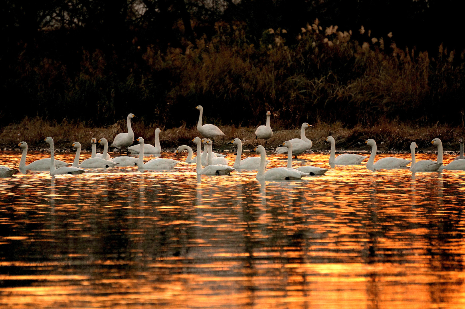 夕暮れ時しばし微睡む白鳥、この後旅立ちます(^◇^)