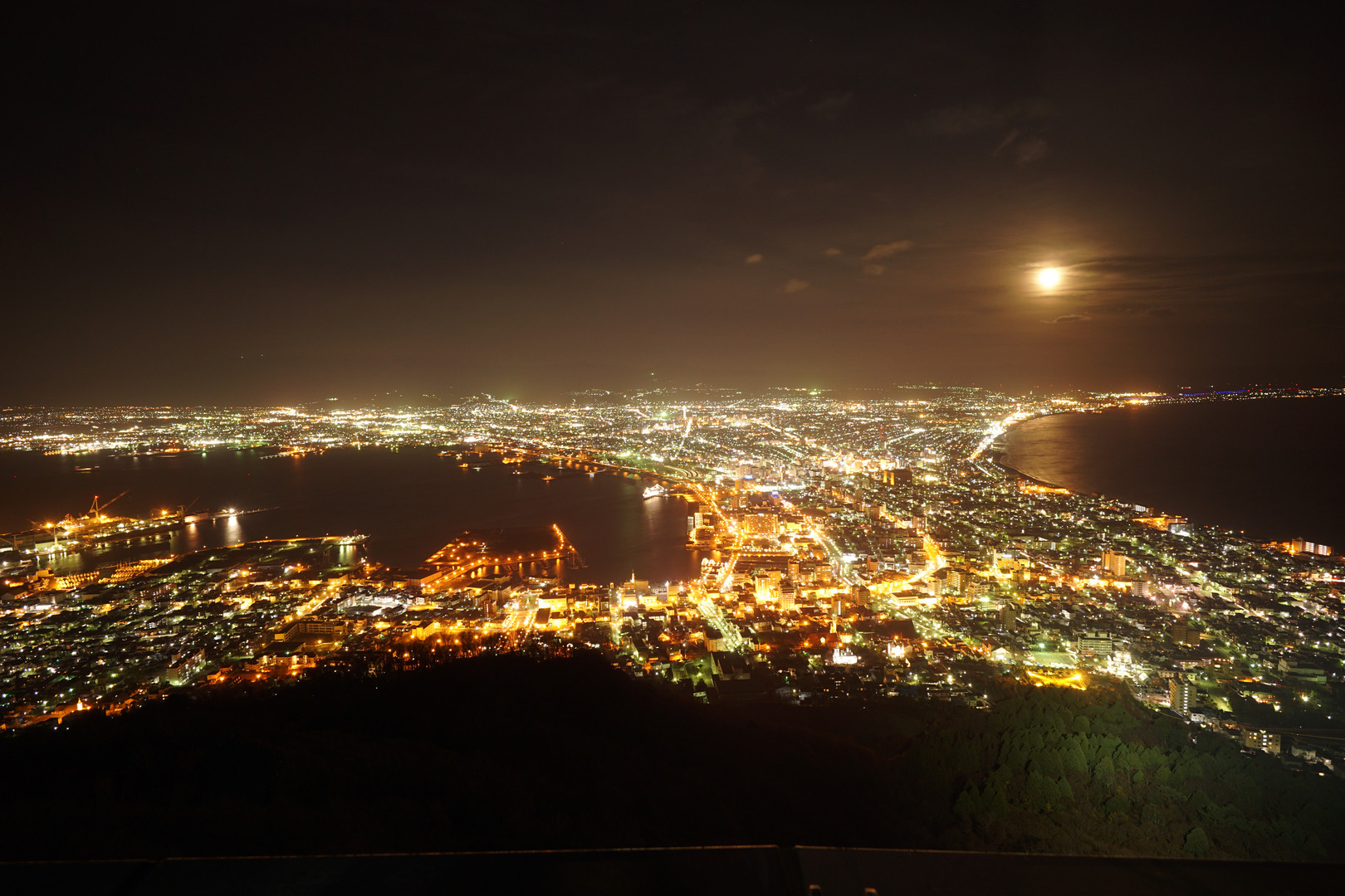 念願の函館夜景です。 お月様が良い感じに出ていてとてもロマンチックでした。