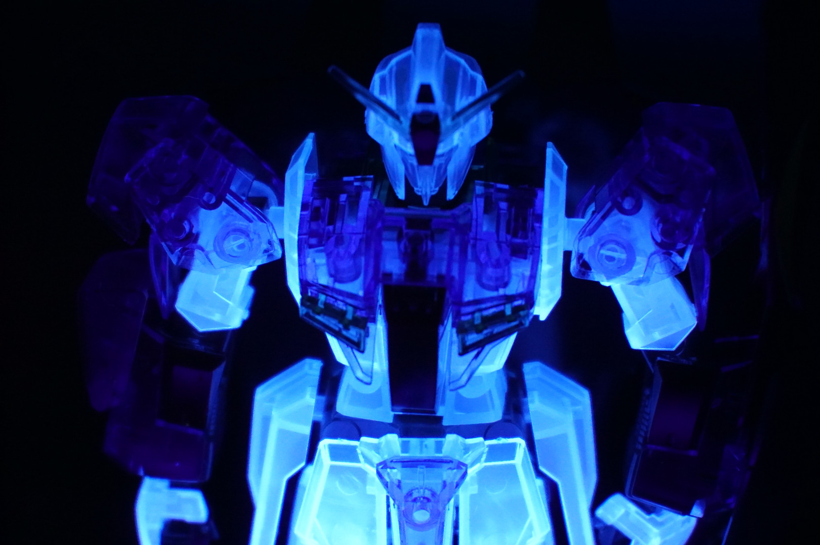 α6000の性能とやらを試してみたくブラックライトに当てたガンプラを試写しました。以前のカメラと比較にならない出来栄えに驚嘆です。