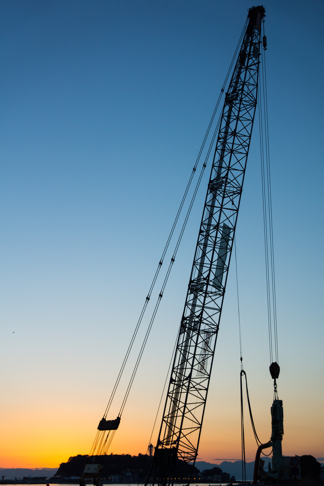 待ち時間中にクレーンを撮ってみたら、背景のグラデーションが綺麗だった。(笑)