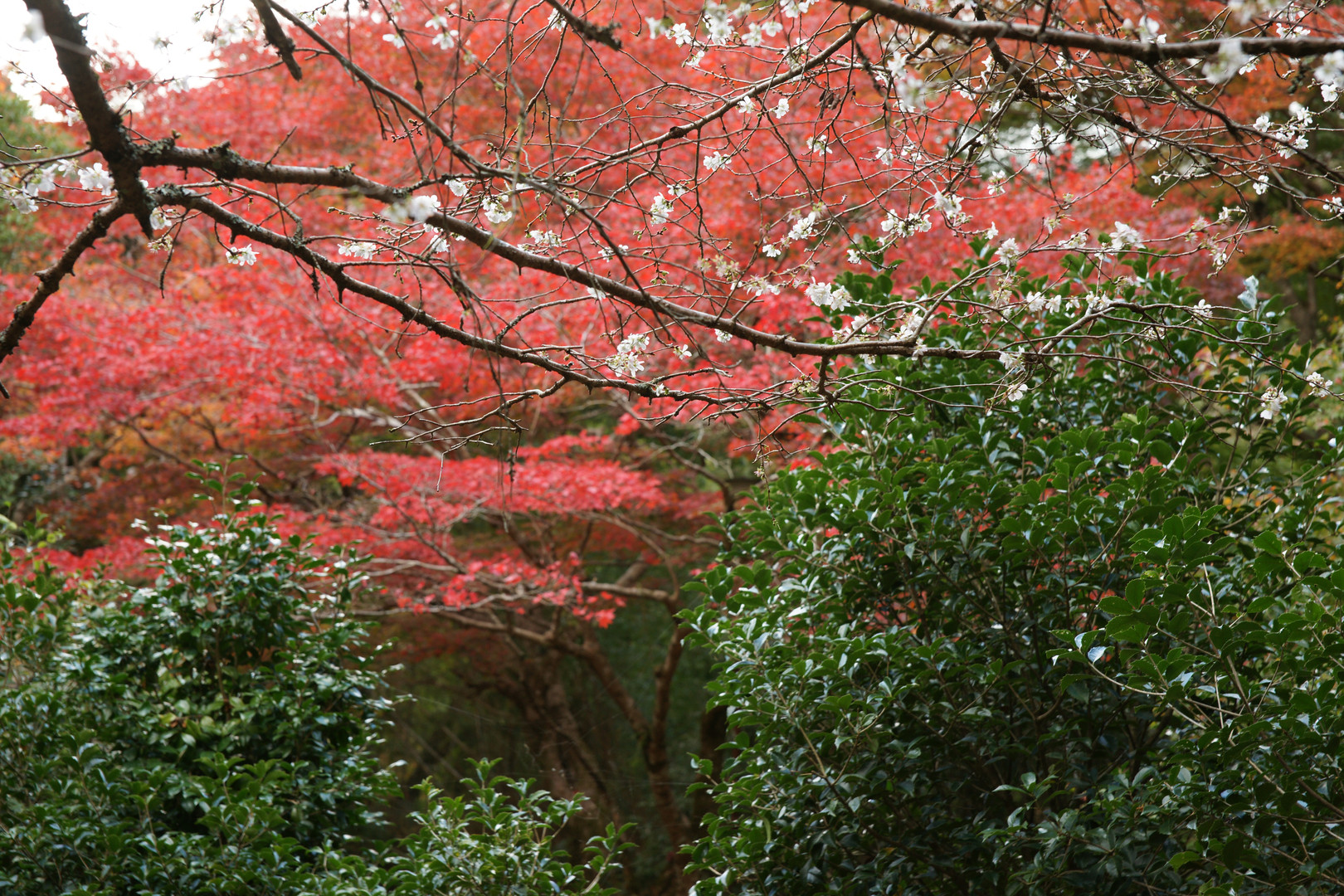帰省した出雲市(旧平田市)内にある「鍔淵寺」境内の紅葉です。写真的には普通と思っていますが、四季咲き桜も見ごろでした。紅葉も素晴らしくきれいですが、桜と同時に観賞できるのは珍しいと思い投稿しました。撮影の腕を競うサイトにふさわしくありませんが、ふるさと自慢というとことで。日にちを変えて「鬼の舌震い」「大山」などの紅葉も楽しんできました。