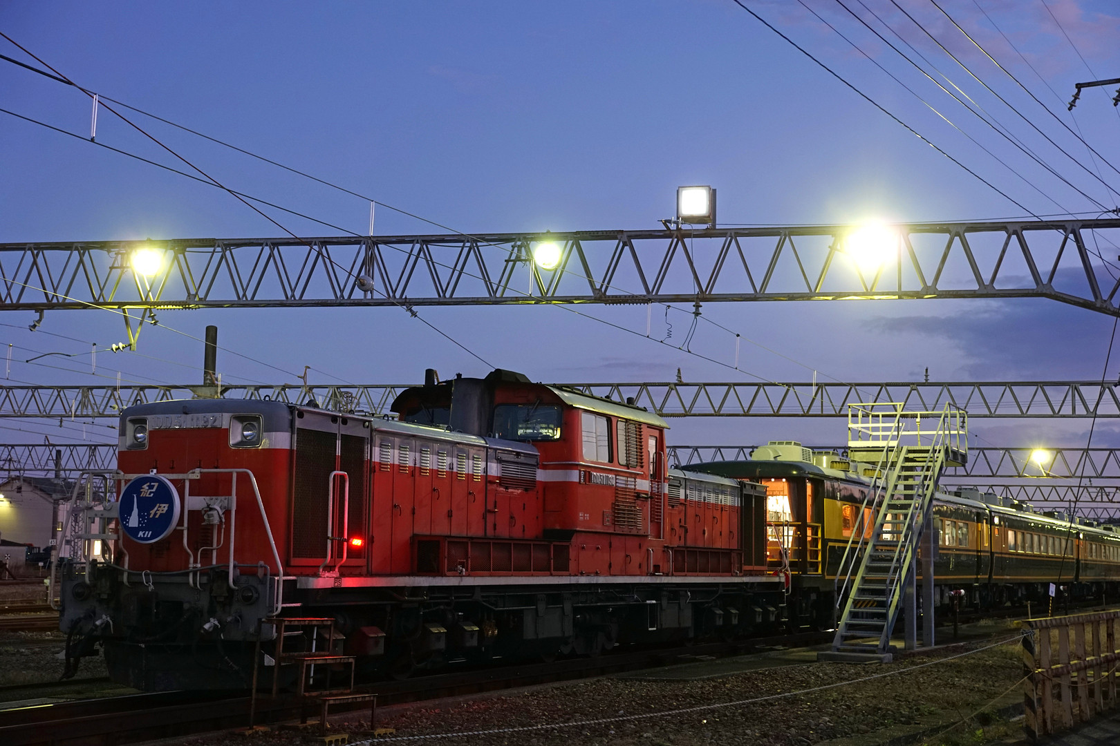 サロンカーなにわ車両を使って、「サロンカー紀伊号」が運行されました。 ヘッドマークは、かつての"ブルートレイン"紀伊号そのままに。