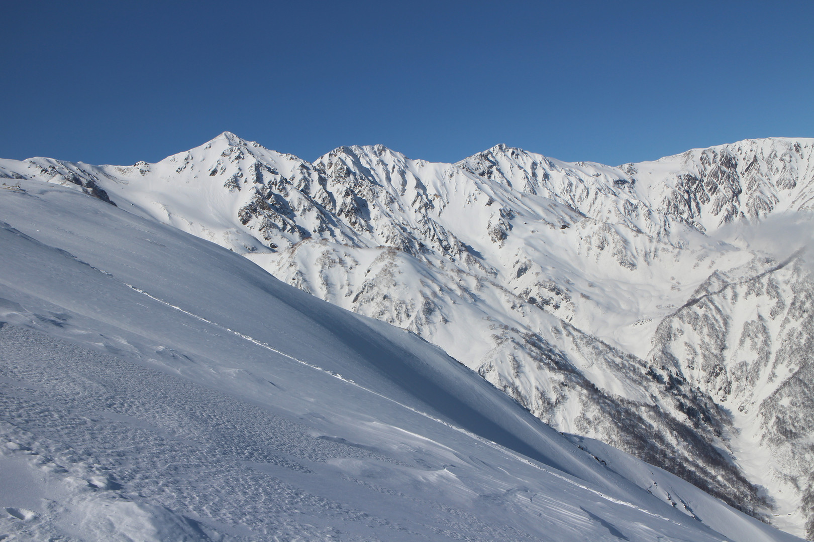 撮影日:2014/02/18 八方尾根から白馬三山(白馬岳、杓子岳、白馬鑓ヶ岳)