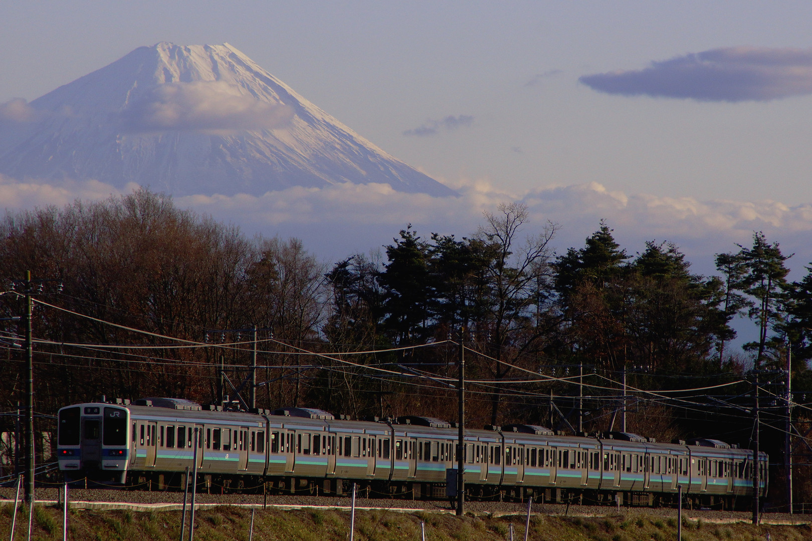 冠雪した富士山と中央本線 この車両も冬山に映えるかも? 少し撮り方を考えてみようかな~