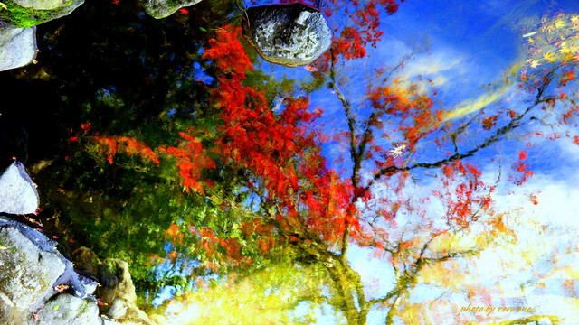 水面に映る紅葉は・・・アートだ
