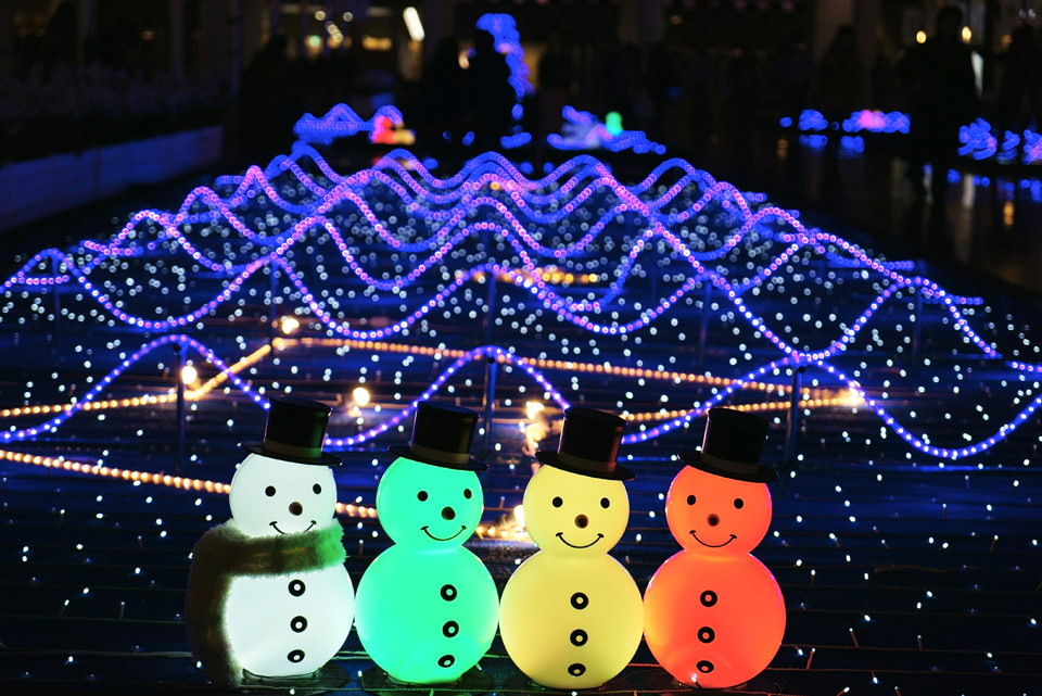 大阪駅の時空の広場イルミネーション。雪だるまが可愛いです。