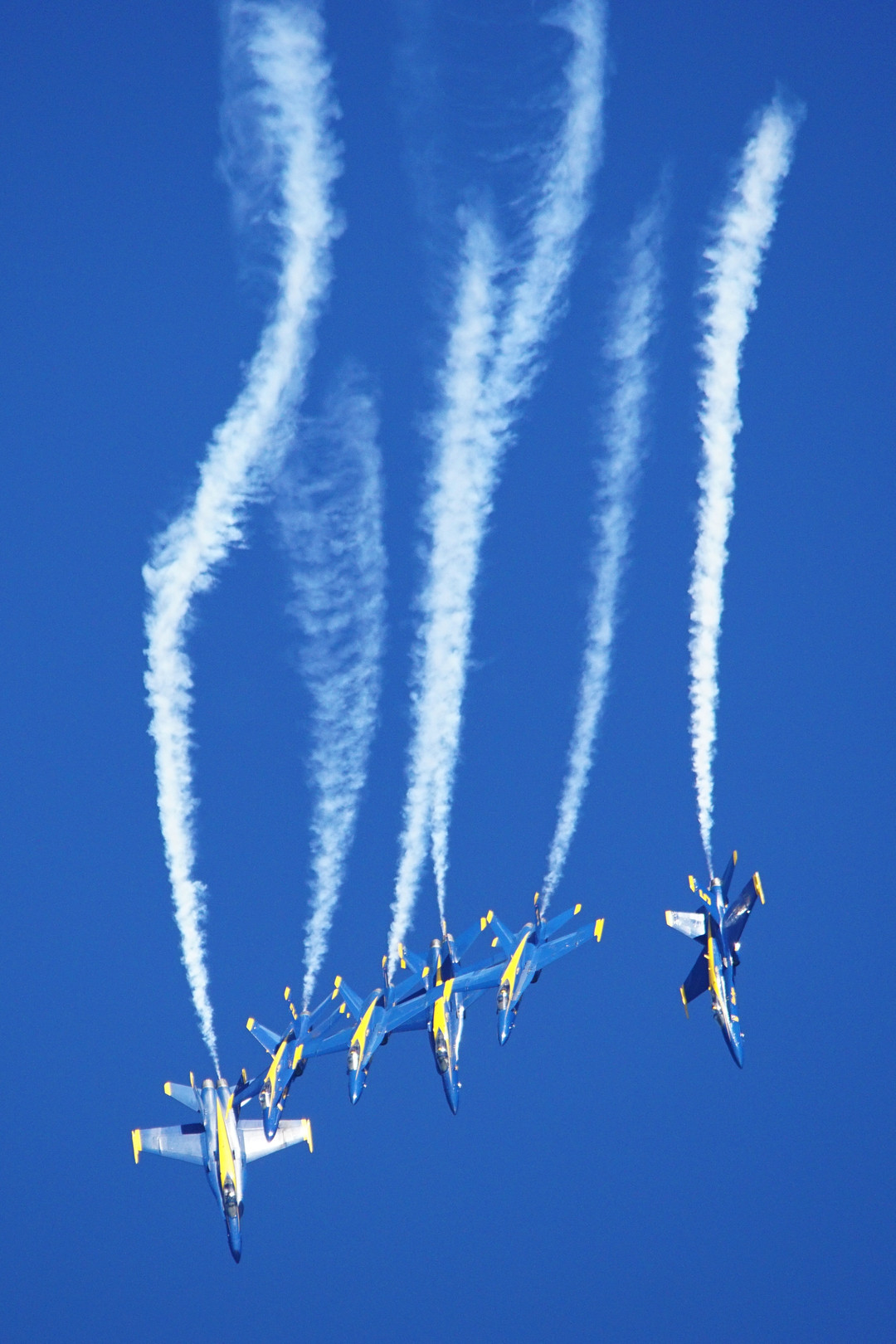 各機がスモークを引きながら降下する演技、そのブレイク直後の様子です