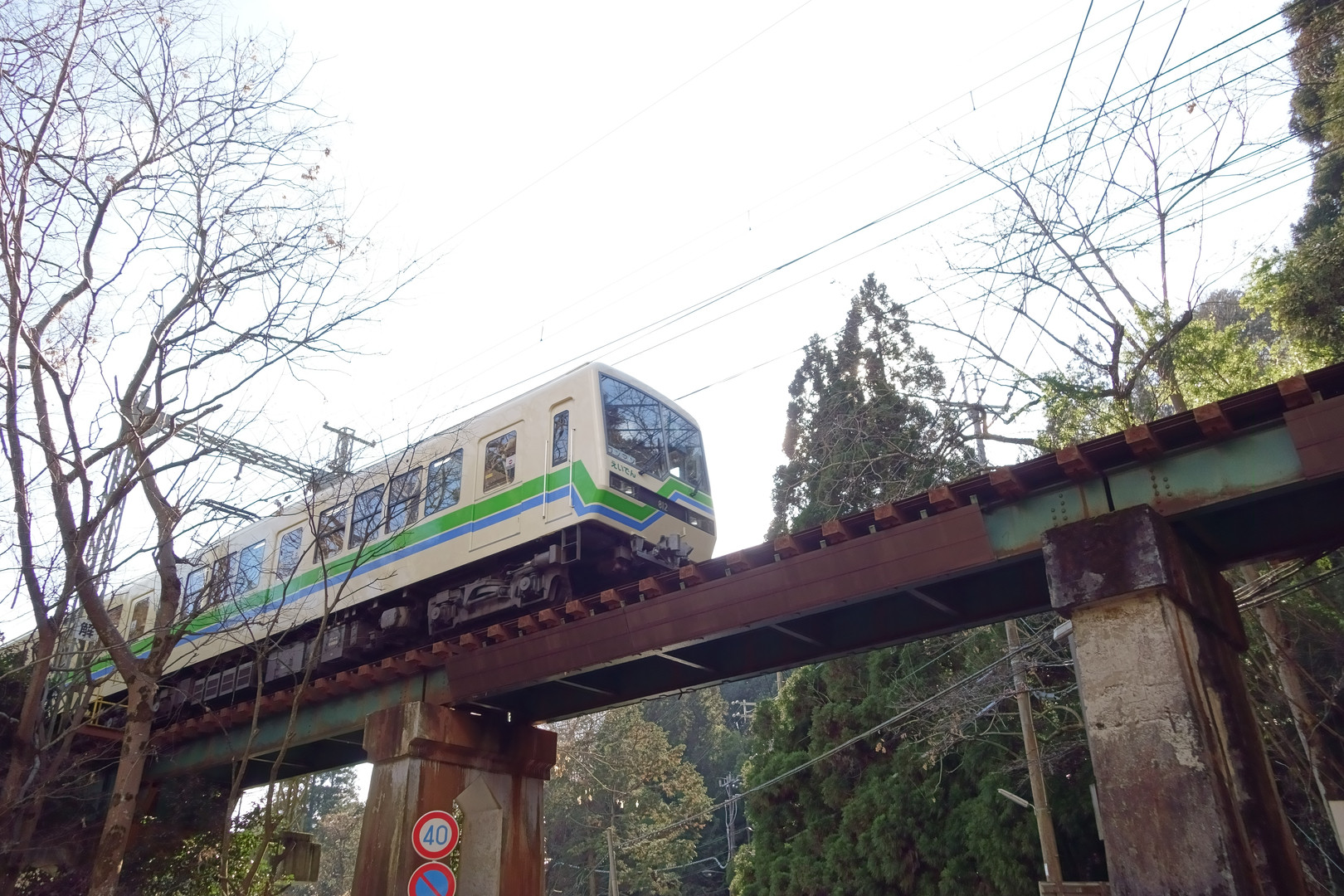 頭上をを叡山電車の小さな車両が駆け抜けて行った。