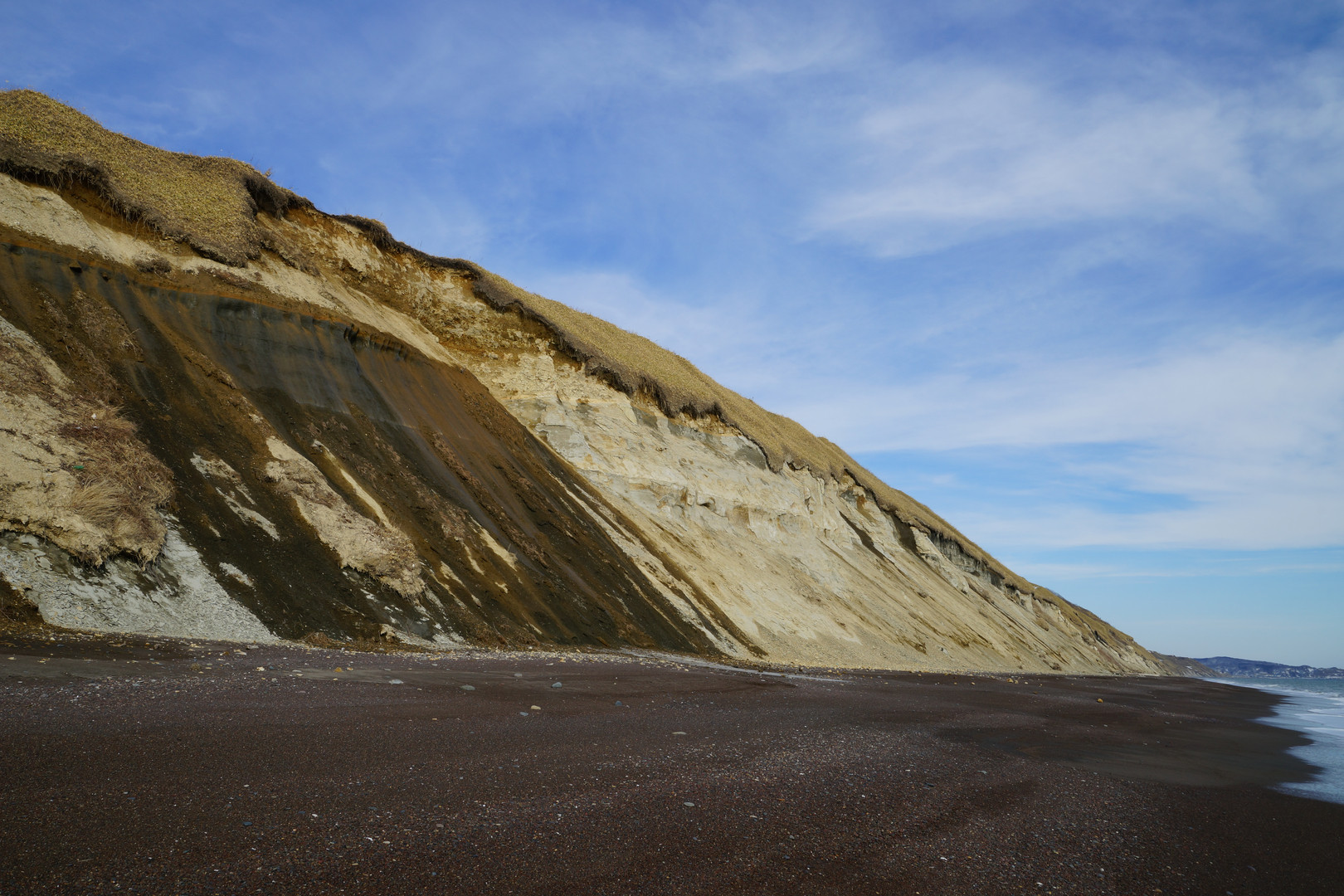 パシクル沼近くの海岸ですが、少し歩いただけで全然趣の違う風景に成ります。波が荒い時は陸地が削られるのでしょうね。
