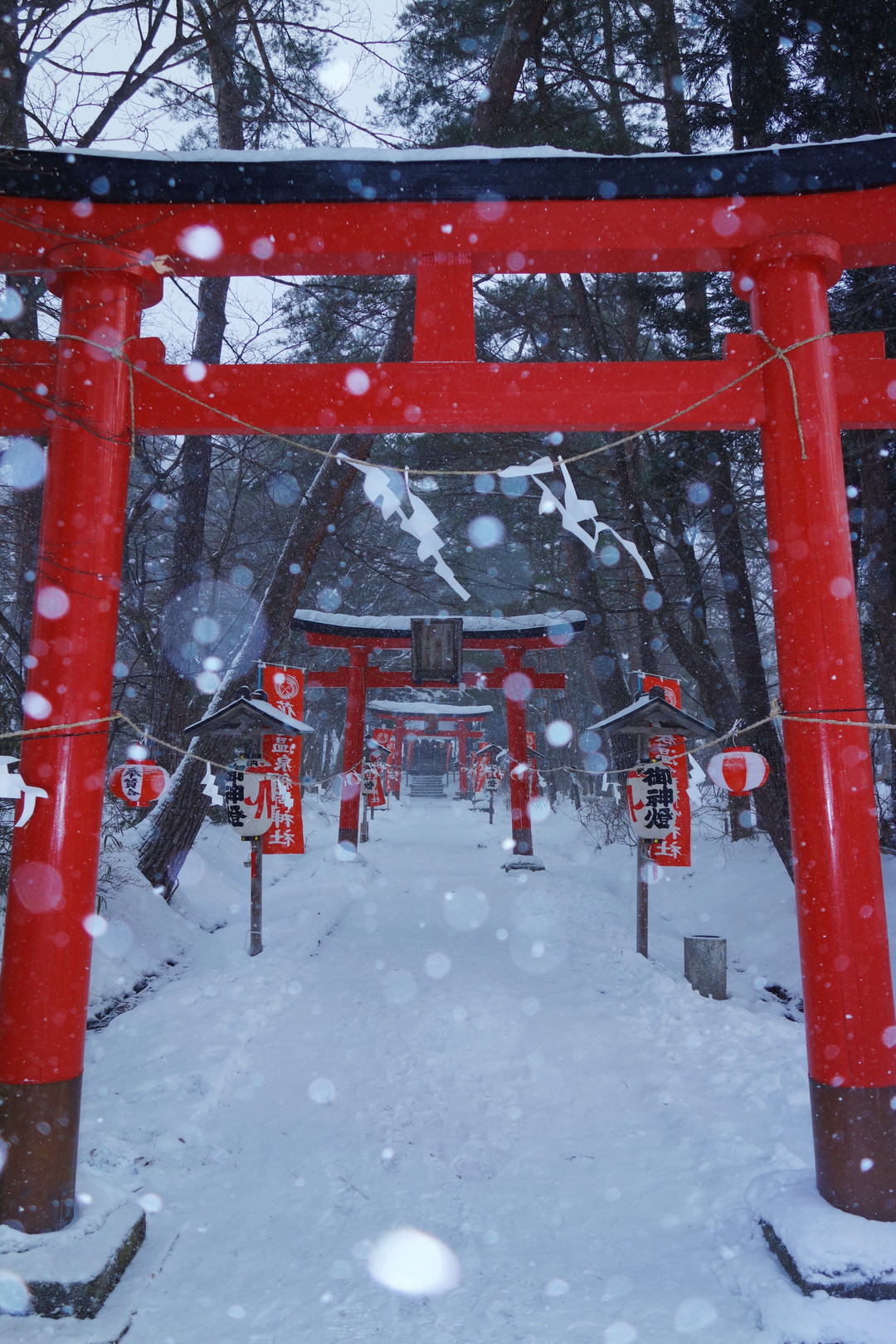 縦構図が花巻温泉稲荷神社 横構図が羽山神社 どちらもふぶいていました