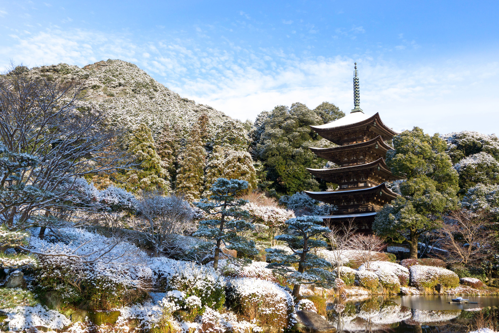 お正月らしい、雪化粧した瑠璃光寺