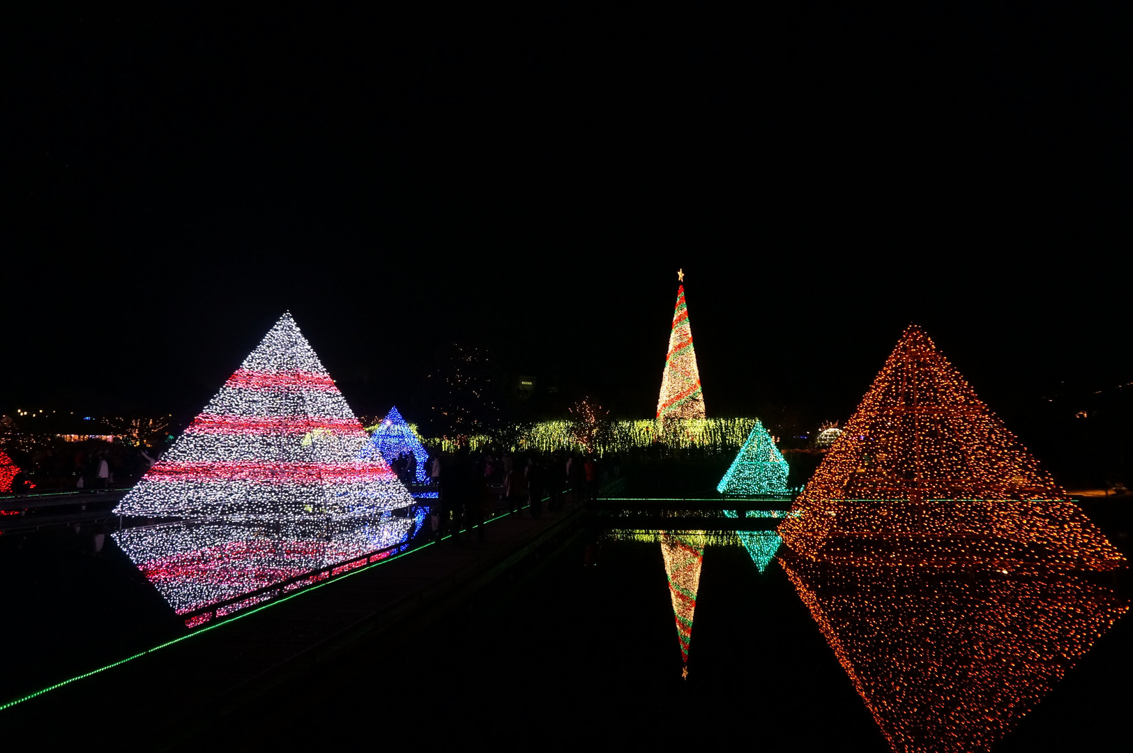 泉に反射してピラミッドがひし形に見えるかな