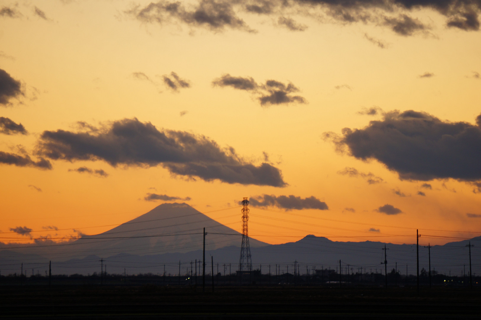 小山市の農道で撮りました 冬は空気が澄んでいるので富士山もくっきり撮る事ができます 夕焼け好きなのでとても綺麗なオレンジが撮れて嬉しい!