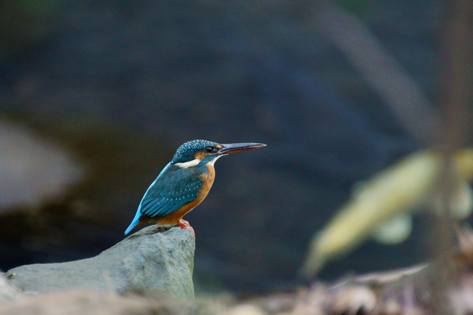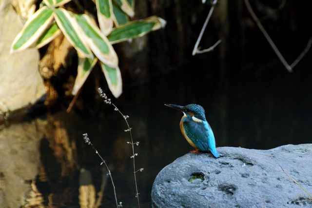ちょっと暗い水辺の石の上で何を待っているのか? 2時間の間に3回姿を見せました!
