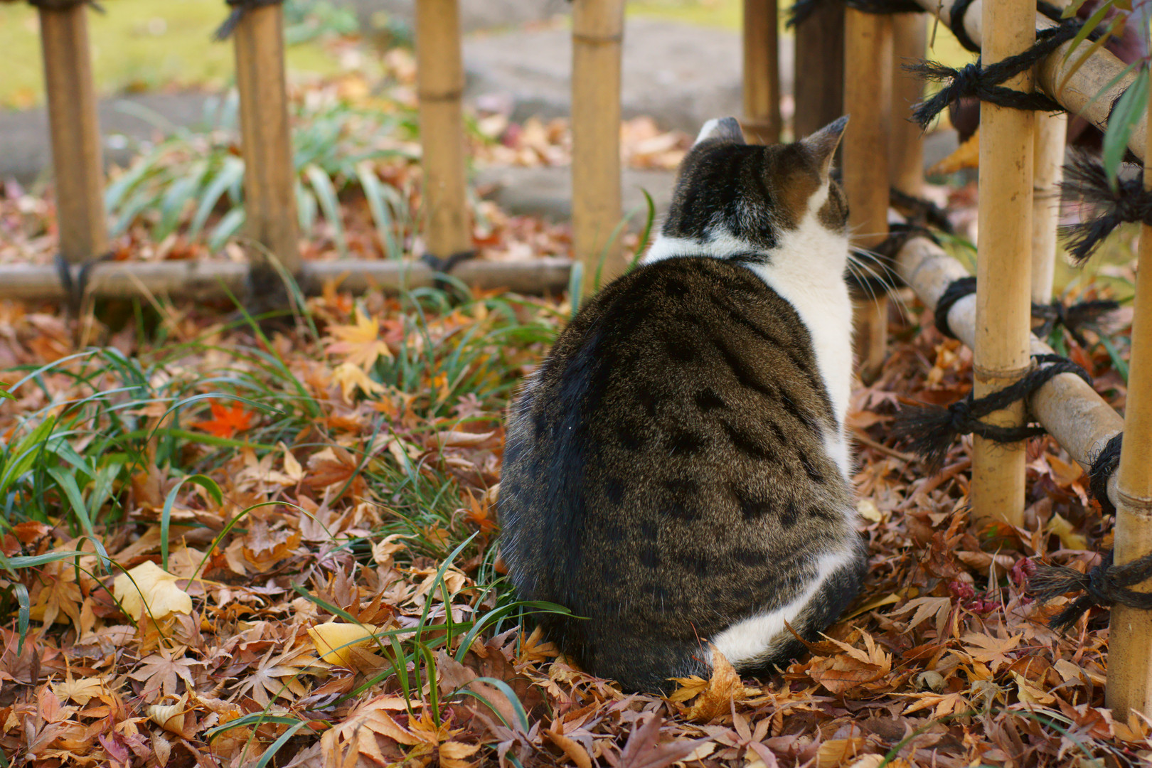 公園で偶然出会った猫です。 このまあるい背中・・実にいい丸さ加減です。 手でポンポンとしたくなりますね!