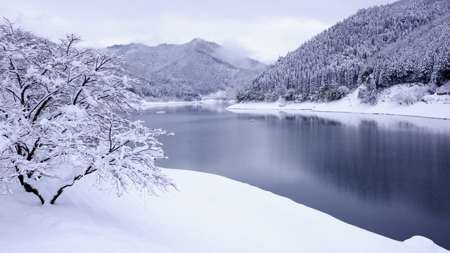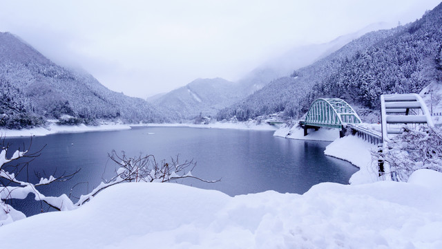 兵庫県宍粟市にある音水湖の雪景色です。