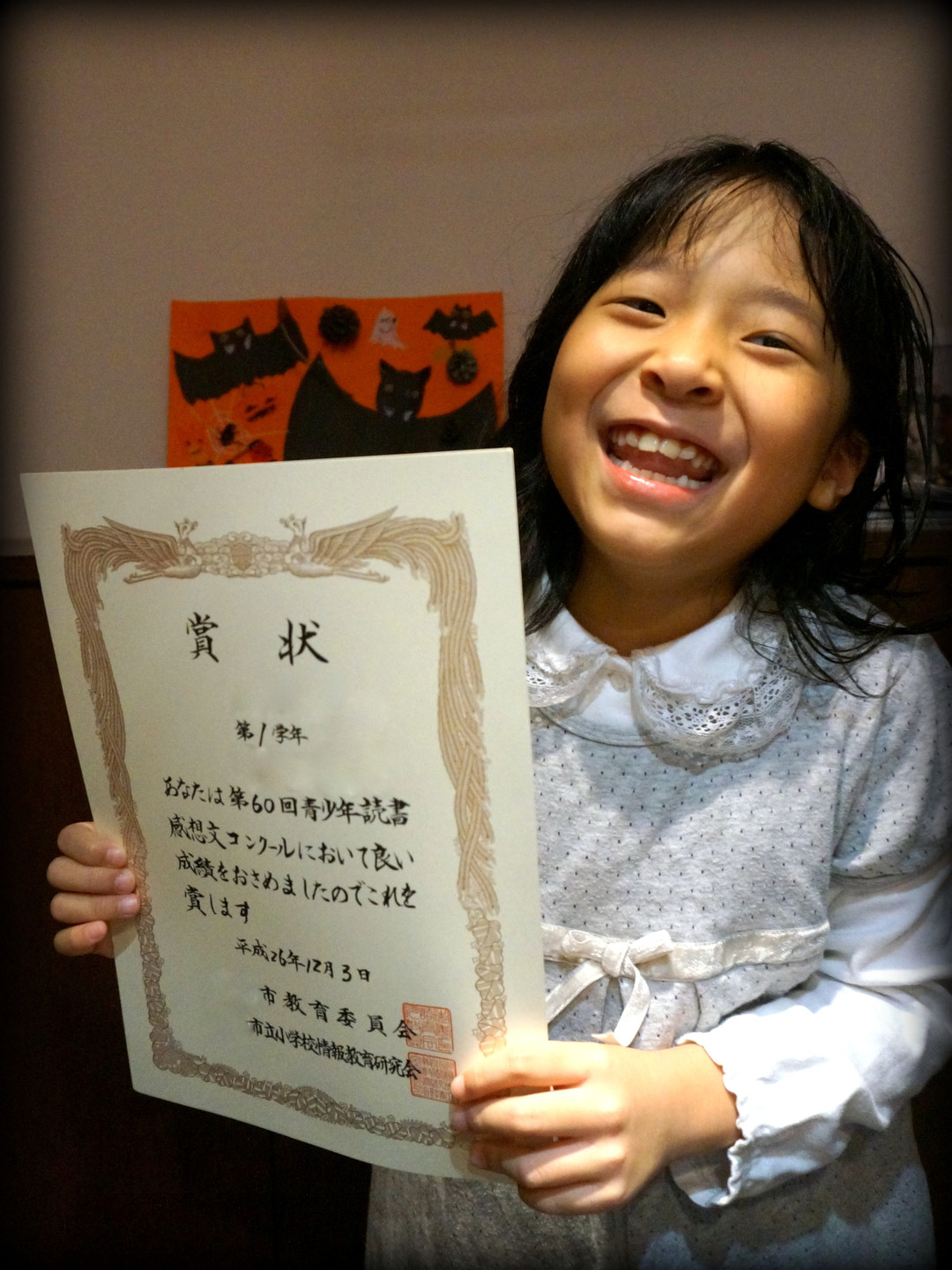 ムスメの書いた読書感想文が、在籍する小学校の1・2年生の中で最優秀に選ばれたとのこと。随分嬉しかったようで、ハイテンションの極みでした(笑)