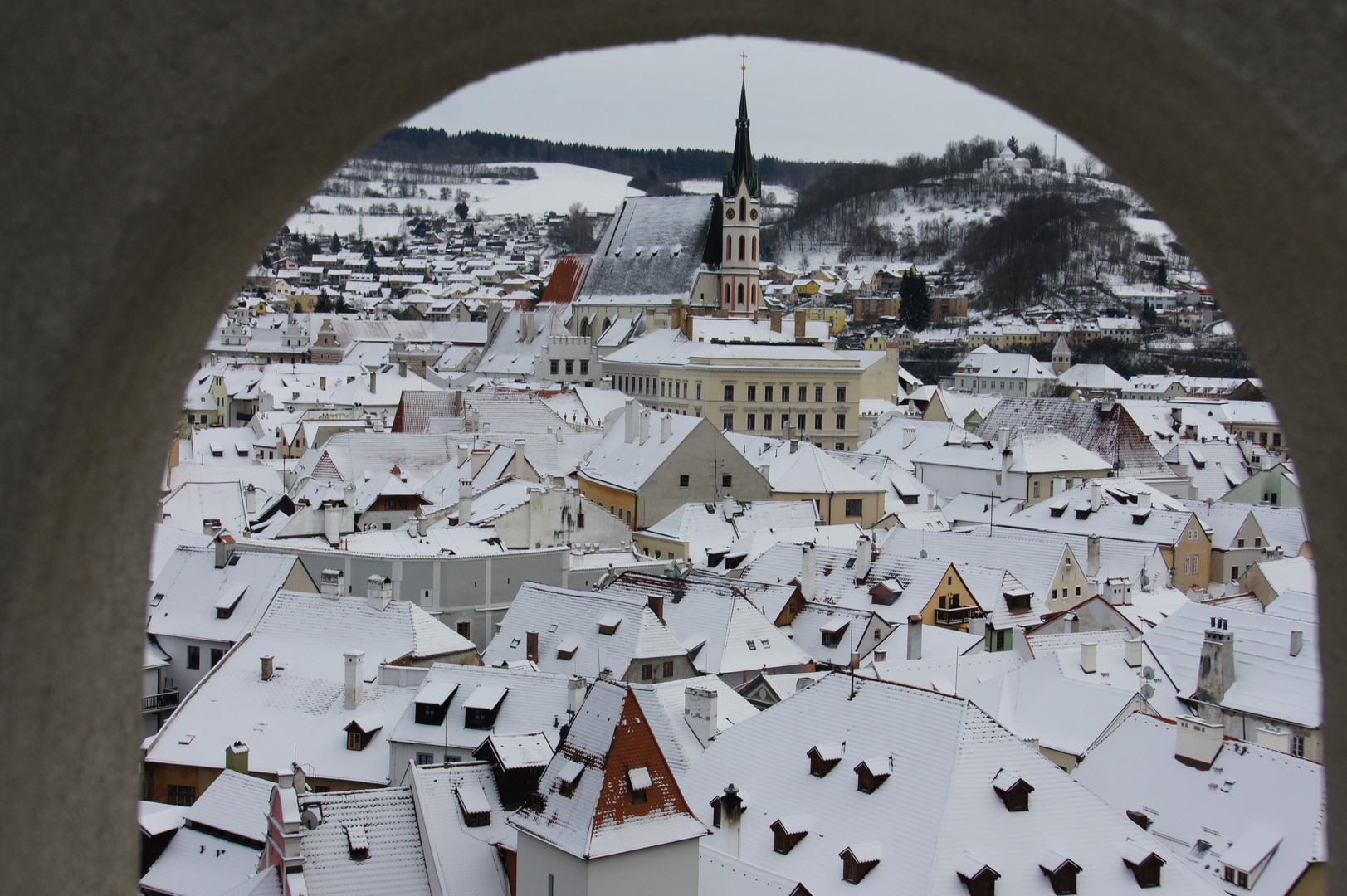 雪景色のチェスキークルムロフです。 白銀の世界が広がりました。