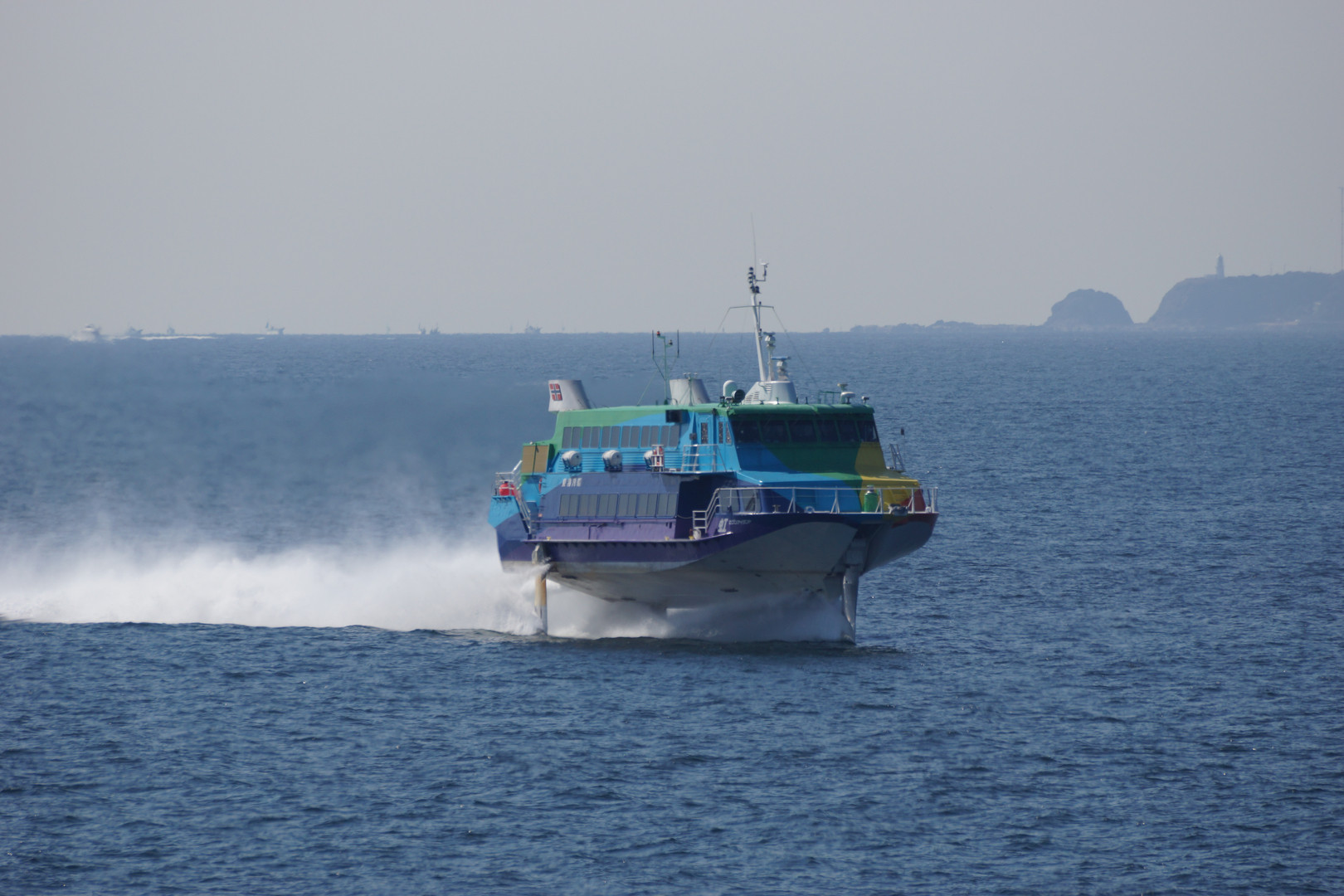 伊豆大島航路の高速船が浦賀水道に入って来ました。東京湾フェリーから撮影