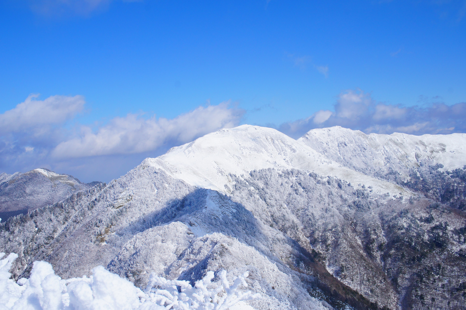 寒風山の山頂から見たら、笹ヶ峰とちち山が、真っ白で綺麗でした。