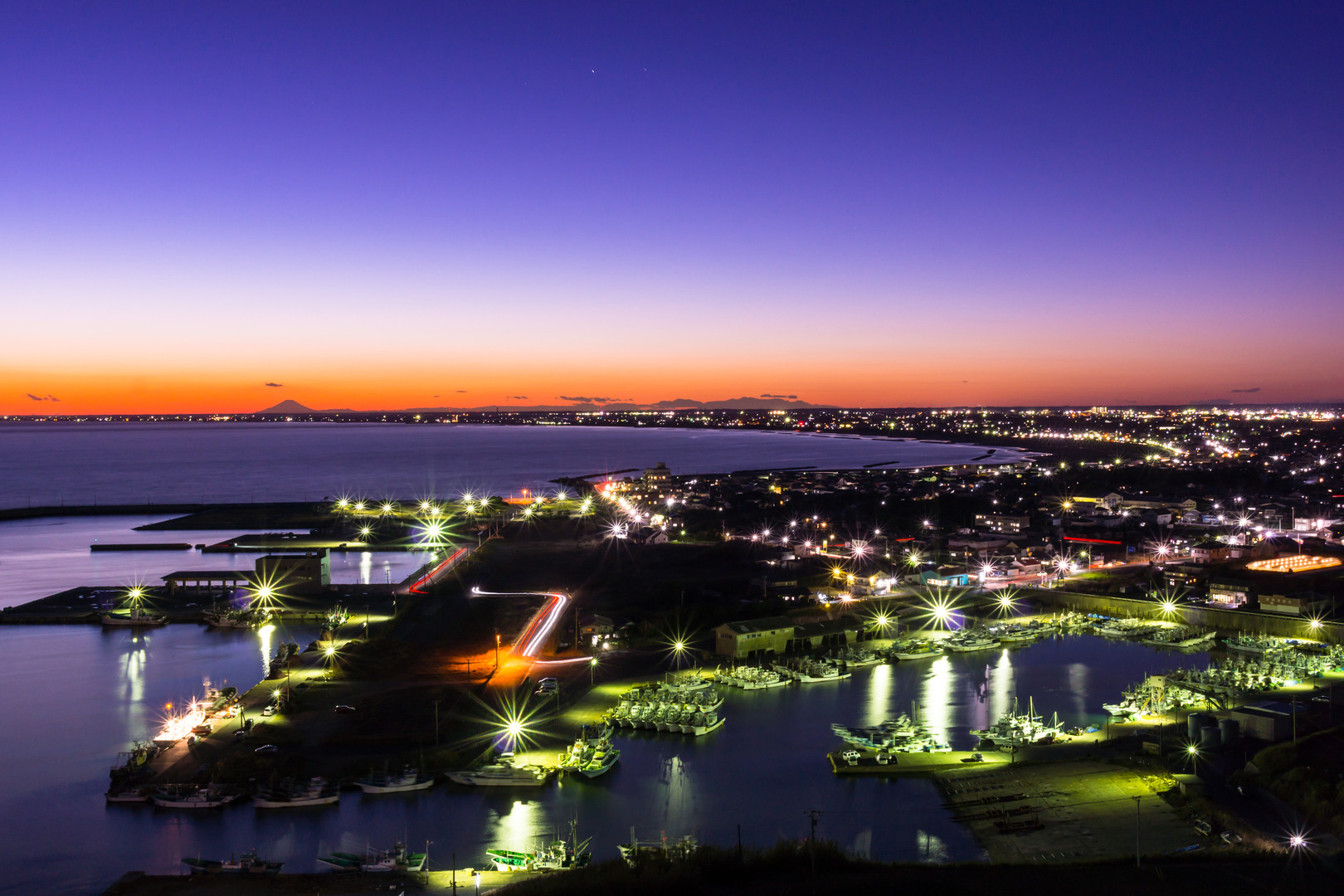 刑部岬にある飯岡灯台から撮ったものです。九十九里浜からはるか遠く富士にかけて輝く夜景が広がっていて美しかったです!