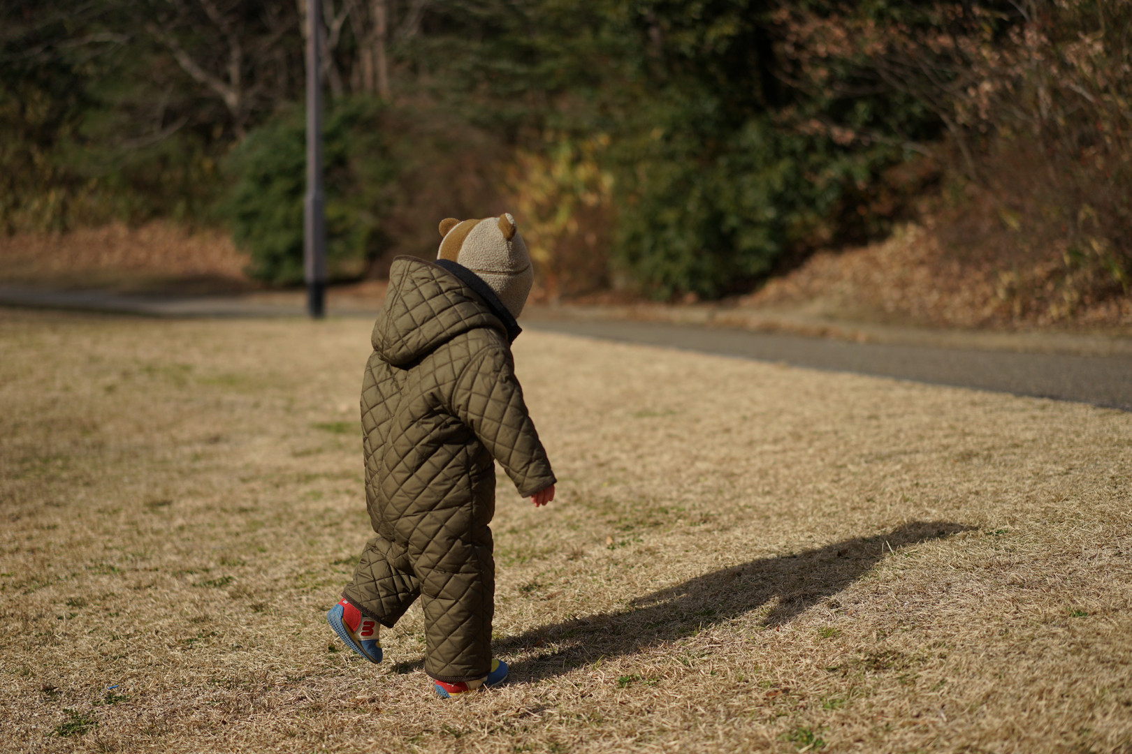 公園に行くと曇り空! さむいさむい でも、お日様だ! あったか〜い