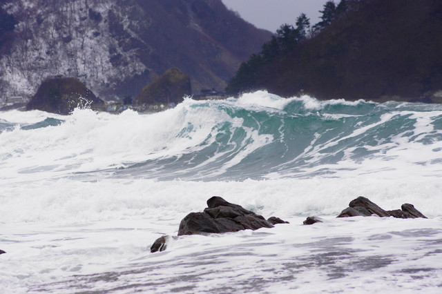 冬の日本海は緑青色なんですよ(●^o^●)