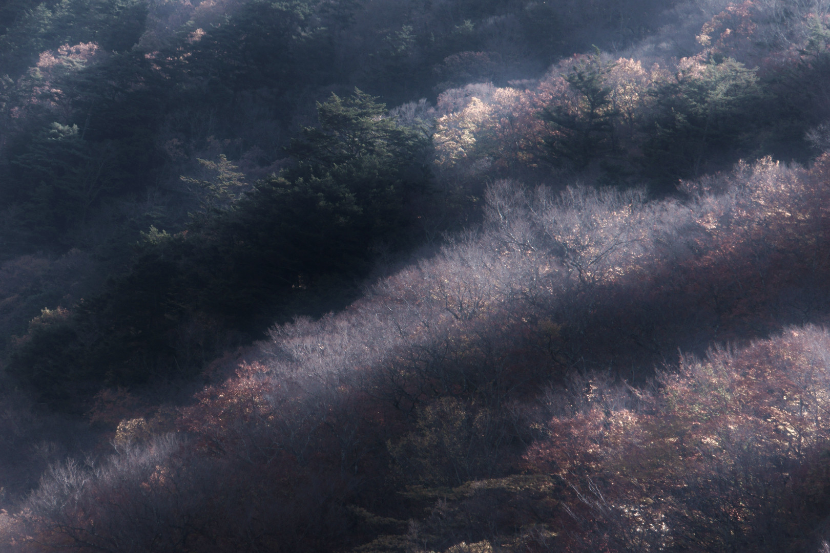 冬枯れしていく枝たちが、冬山にポッと花を咲かせているようでした。
