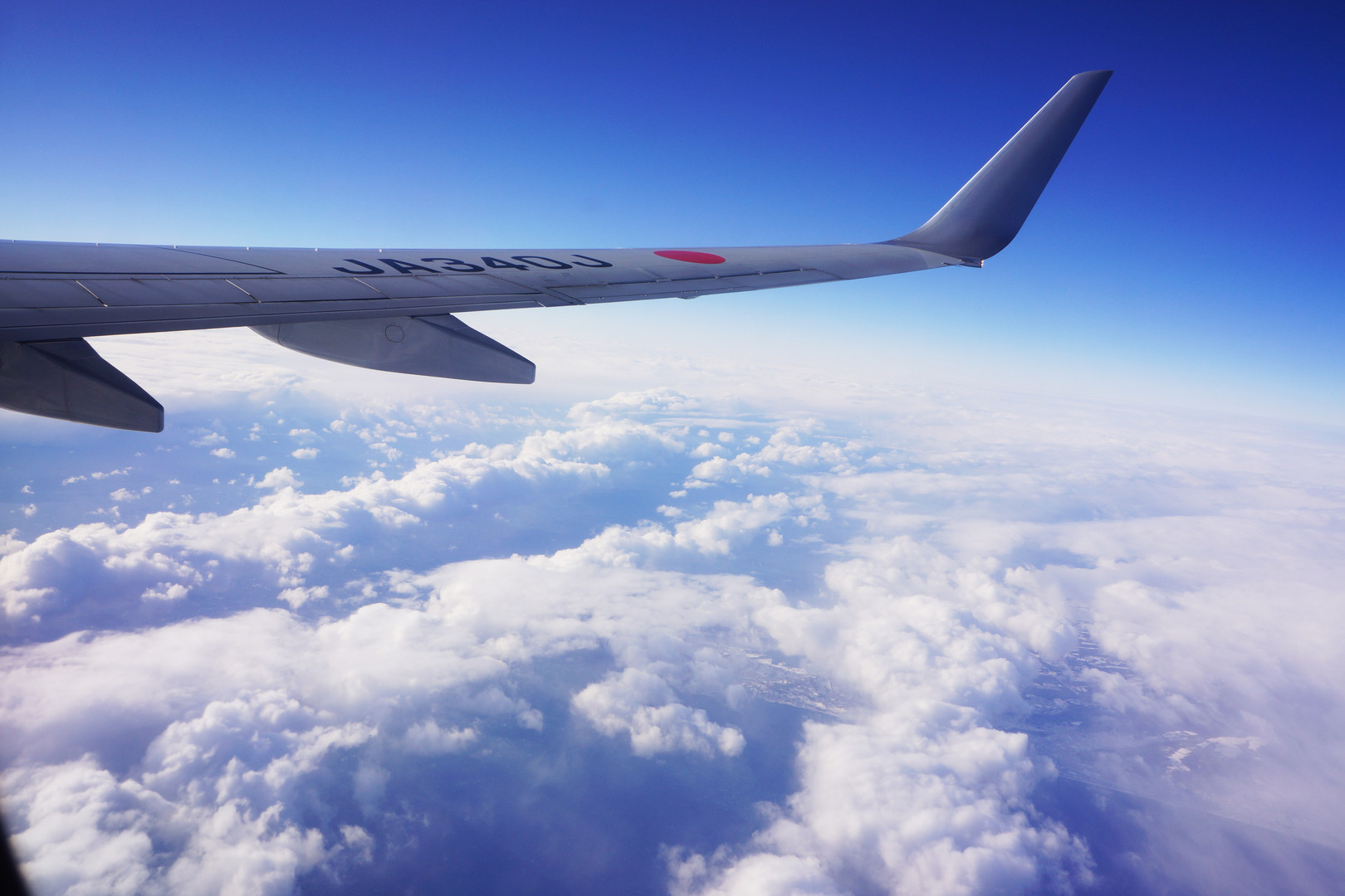 旅の始まりはいつも雲の上の青空とご対面します。 わくわくの始まりです。