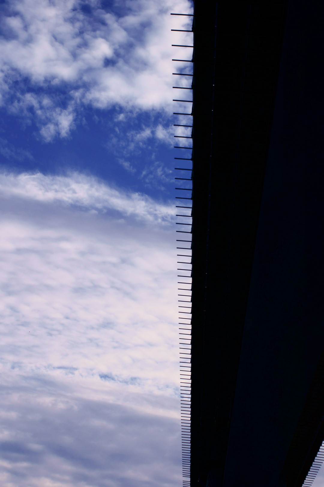日の出を撮影しに出動しましたが、雲の出方が今ひとつで作品になりませんでした~昼間は撮影とは違う活動をして、夕景を撮影に再び出動するも、こちらも厚い雲にはばまれて作品になりません~ふと見ると橋の下へ降りる階段を発見!降りてみると工事のためか橋にパイプが無数に取り付けられていて、おもしろい絵になっていました!!