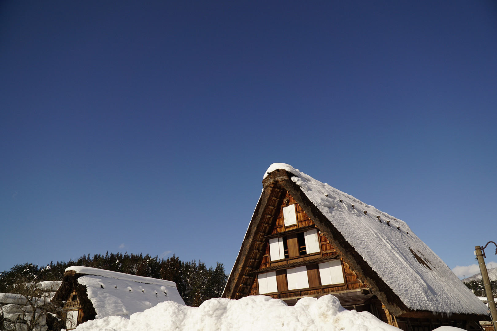 先日訪れた白川郷。 青い空が印象的な日でした。