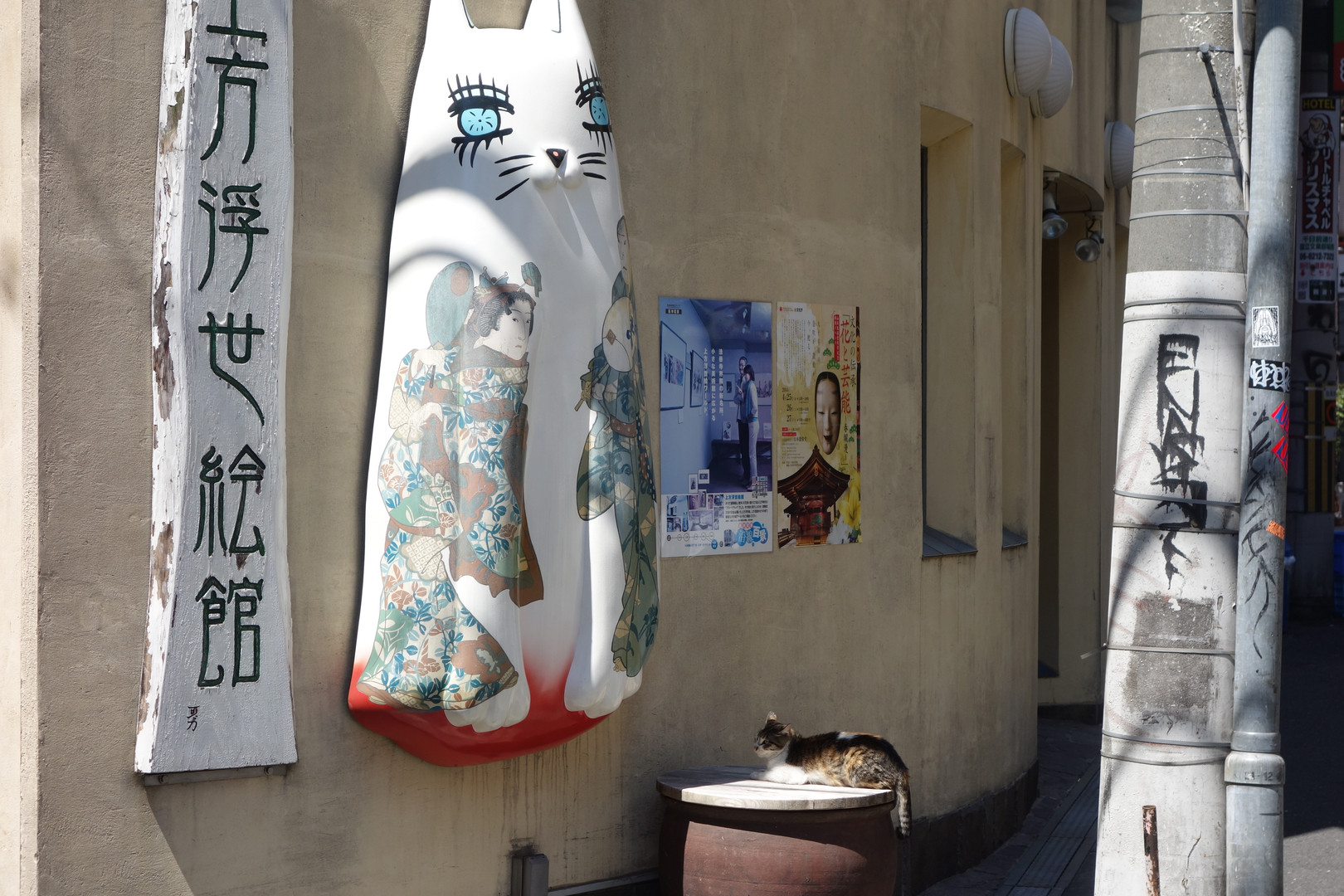でっかい猫(オブジェ)の前に猫が…