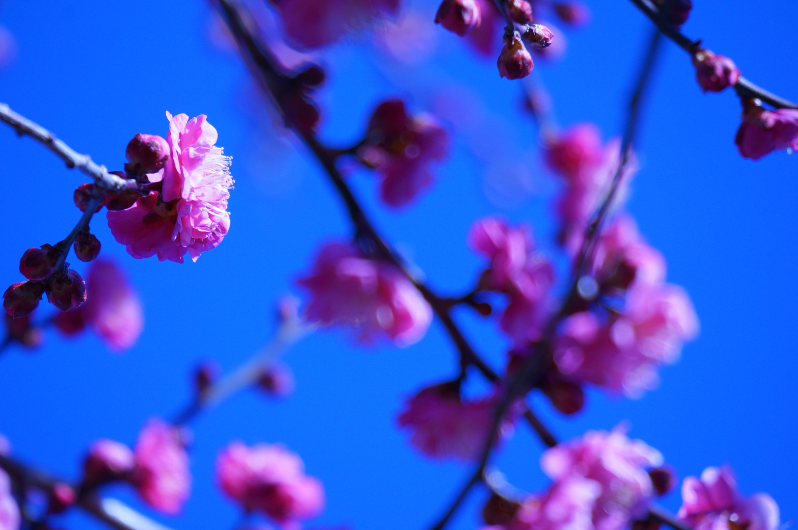 ズームレンズで花の写真に挑戦 鮮やかに設定したところかなり青が強くなってしまいました。