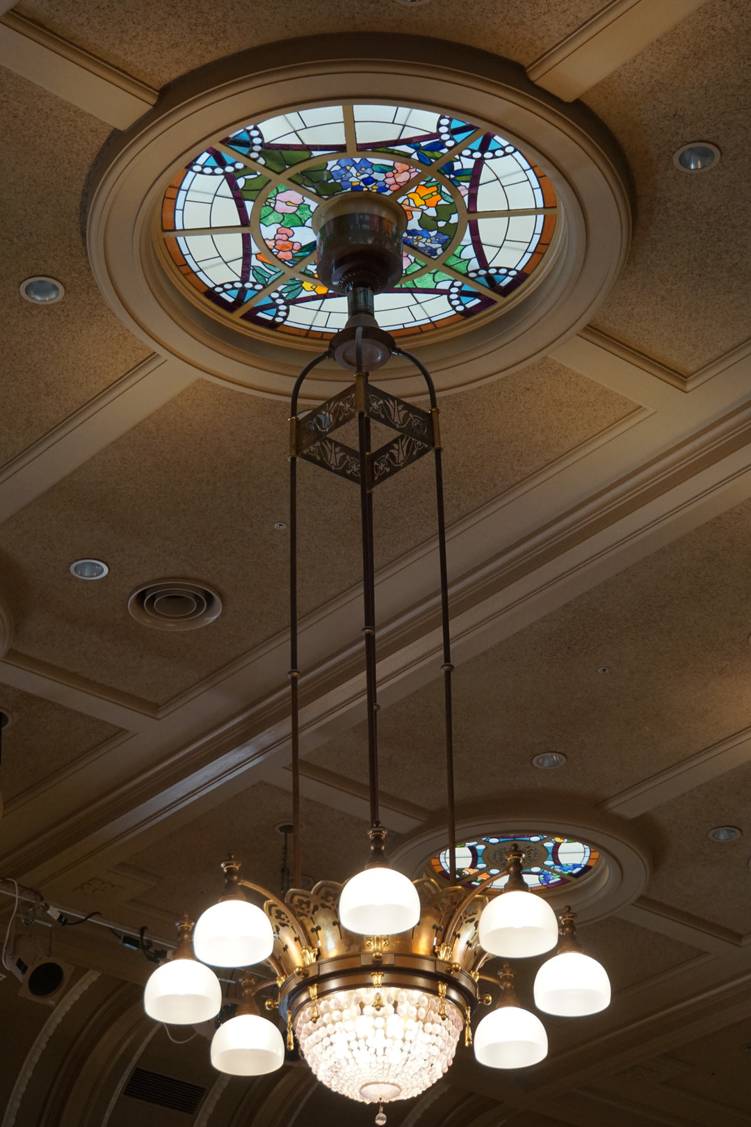 シンプルですがステンドグラスもシャンデリアも美し過ぎます。 @大阪中央公会堂