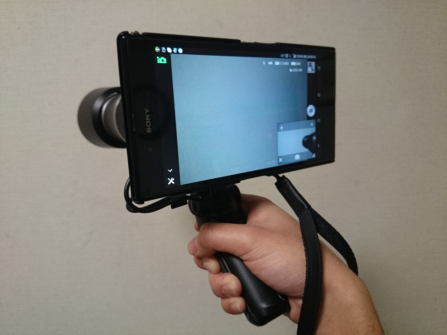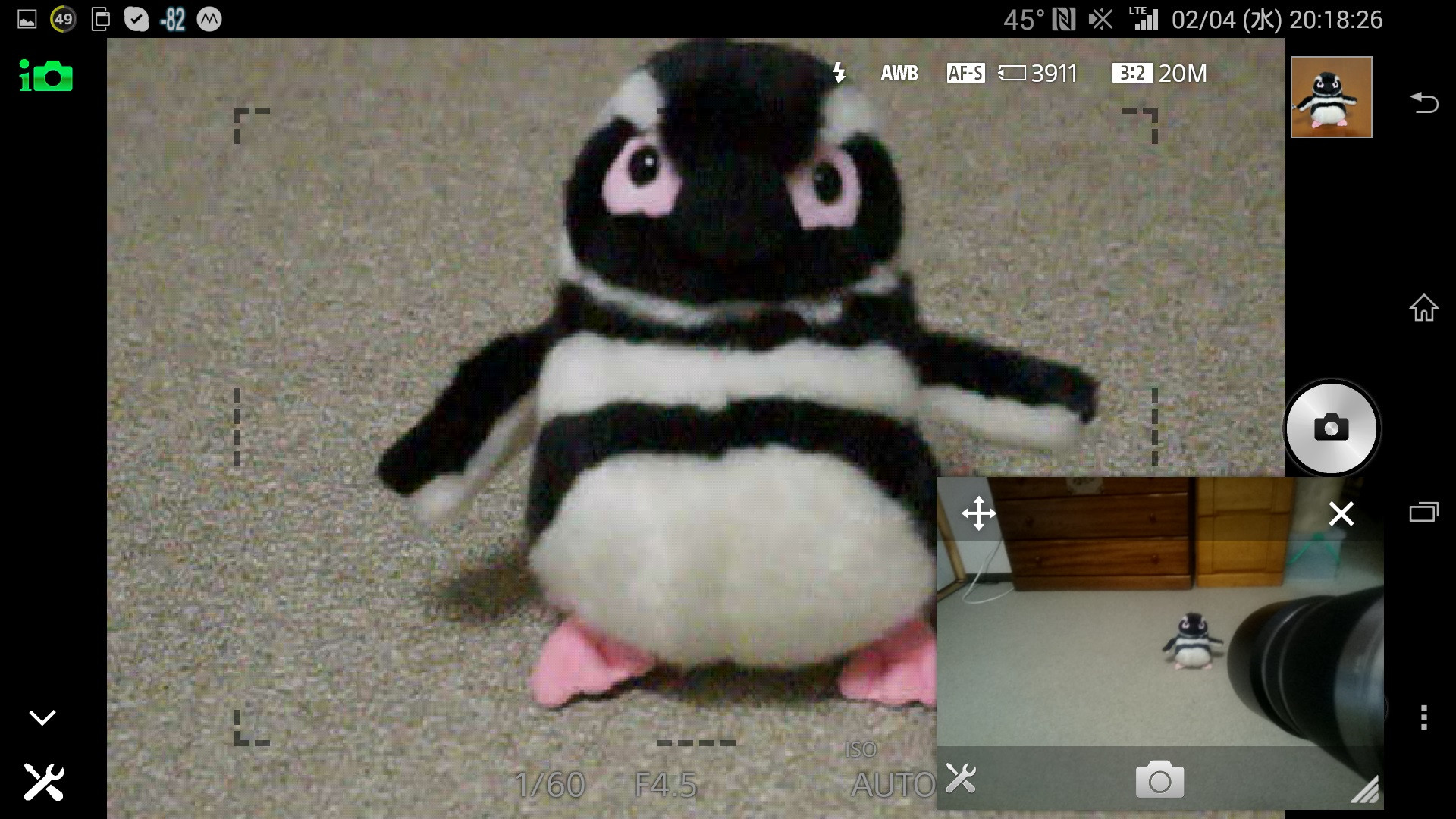 スマホ画面のスクリーンショット。右下がスマホ本体のカメラの映像。
