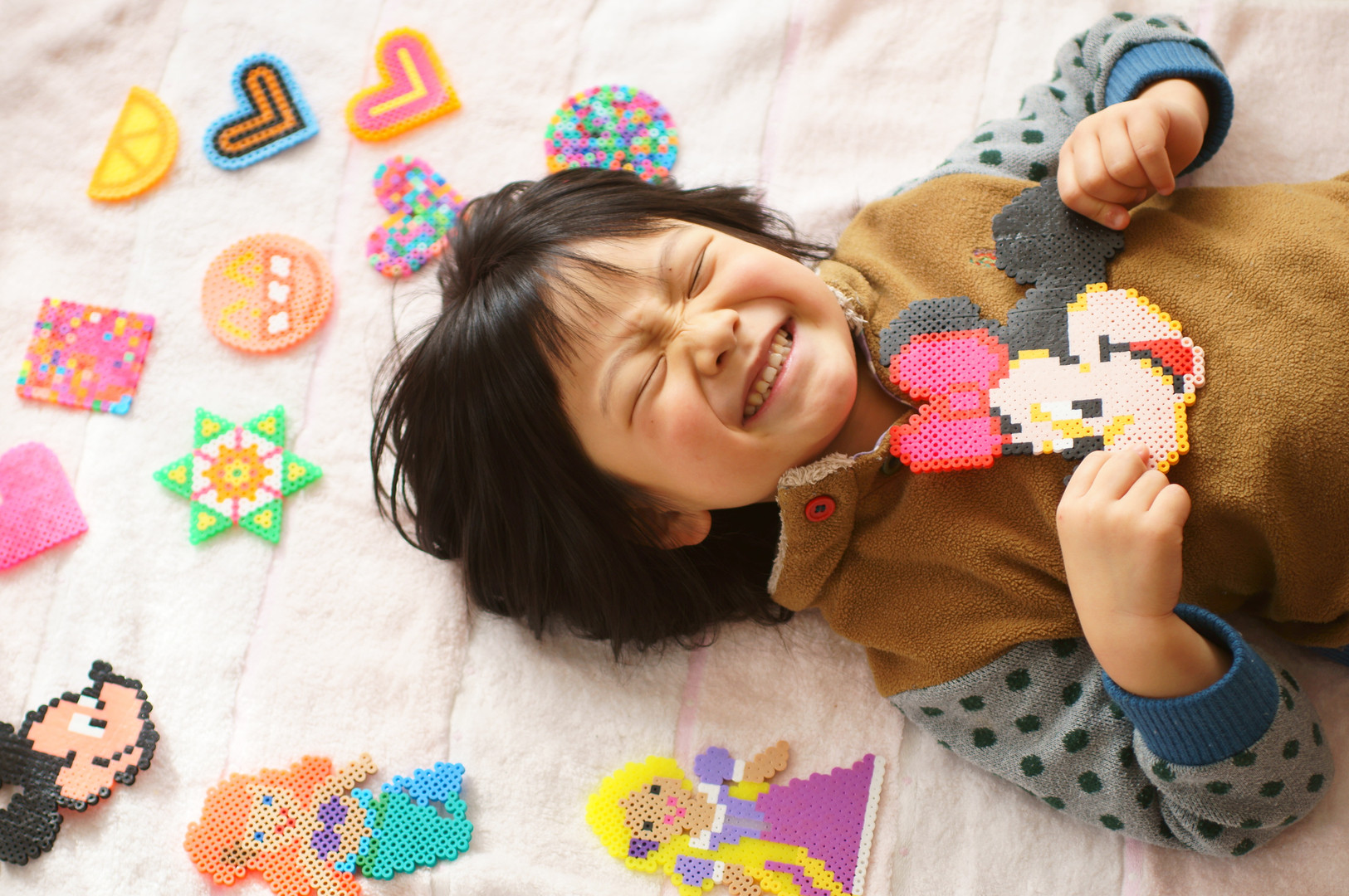最近はまっているアイロンビーズです!大作はパパやママが手伝ってくれていますが、ほとんど自分でできるようになってきました~撮影しようというと、自慢の気持ちもあるのですが恥ずかしい気持ちが勝つみたいで、おふざけ顔になってしまいます~何枚もとりましたが、まじめな顔は1枚だけ~!!